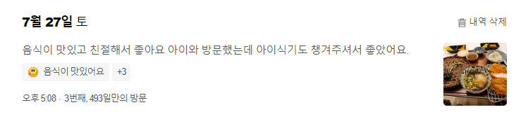 깔끔한 한상차림으로 나오고 음식도 다 맛있어서 만족스러운데 아이에 대한 배려까지 있는 식당이라 많은 사랑 받으며 영업하셨으면 좋겠어요.