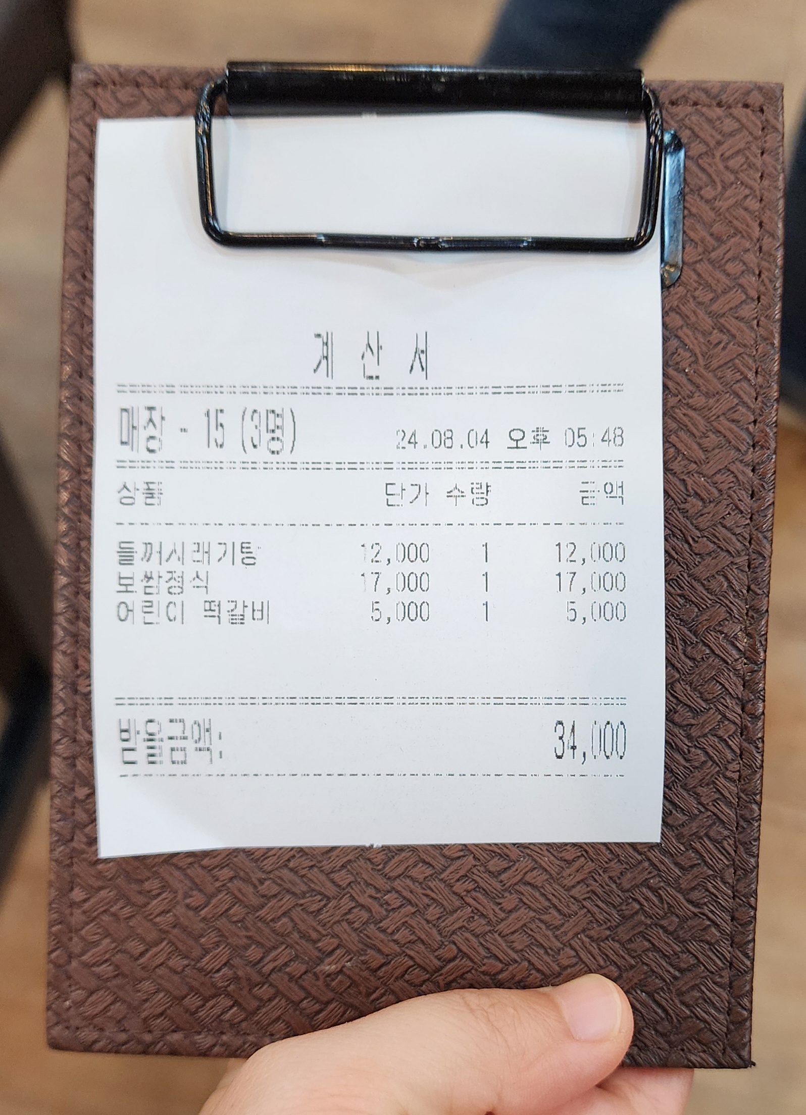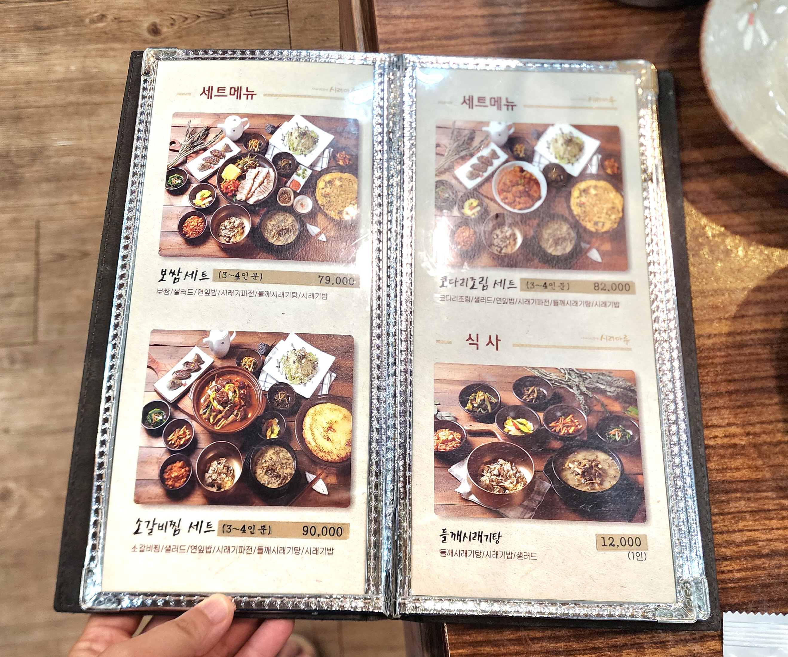 들깨시래기탕, 보쌈정식, 어린이 떡갈비를 주문했어요.