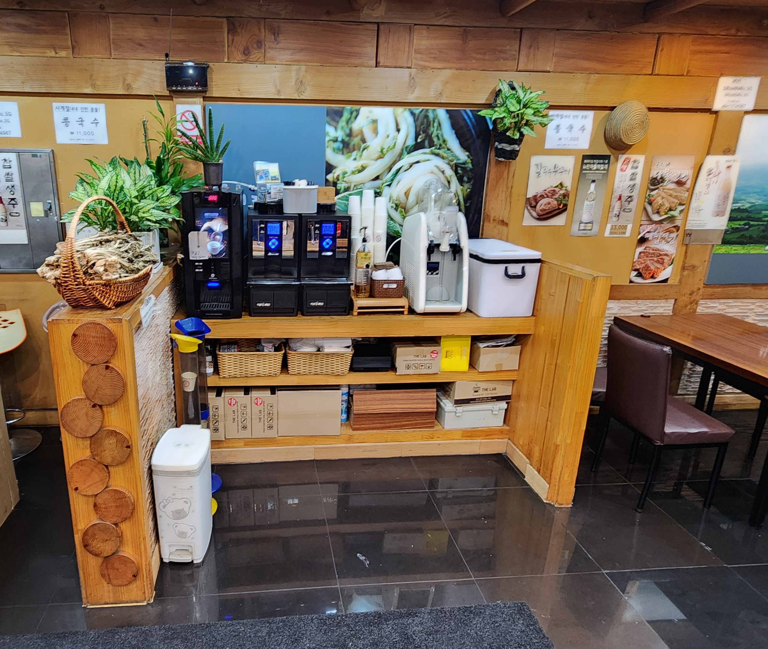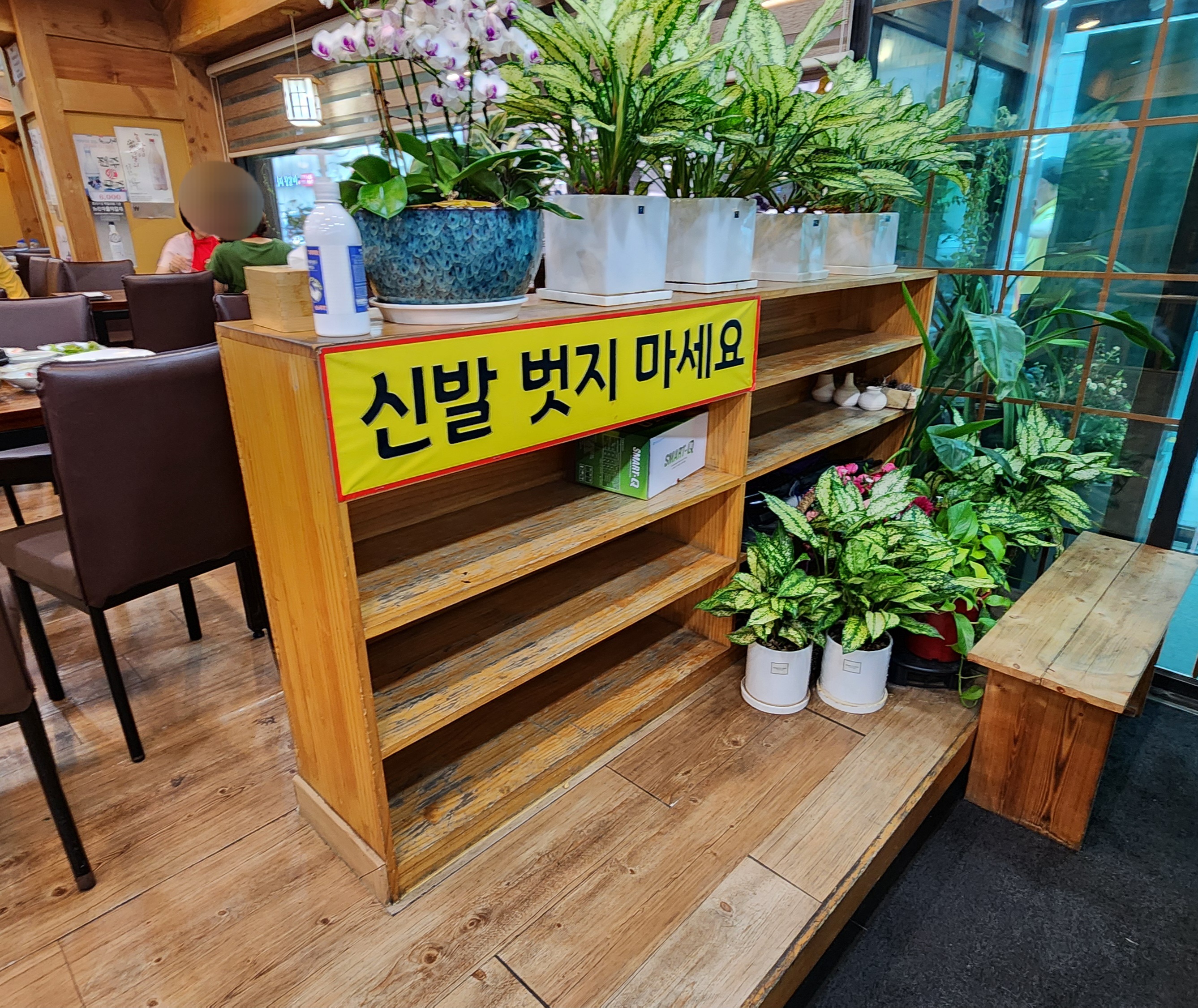 식당 들어서면 신발 벗어야 하나? 싶은 신발장이 보이는데요 신발 벗지 않고 테이블에 착석하면 됩니다.