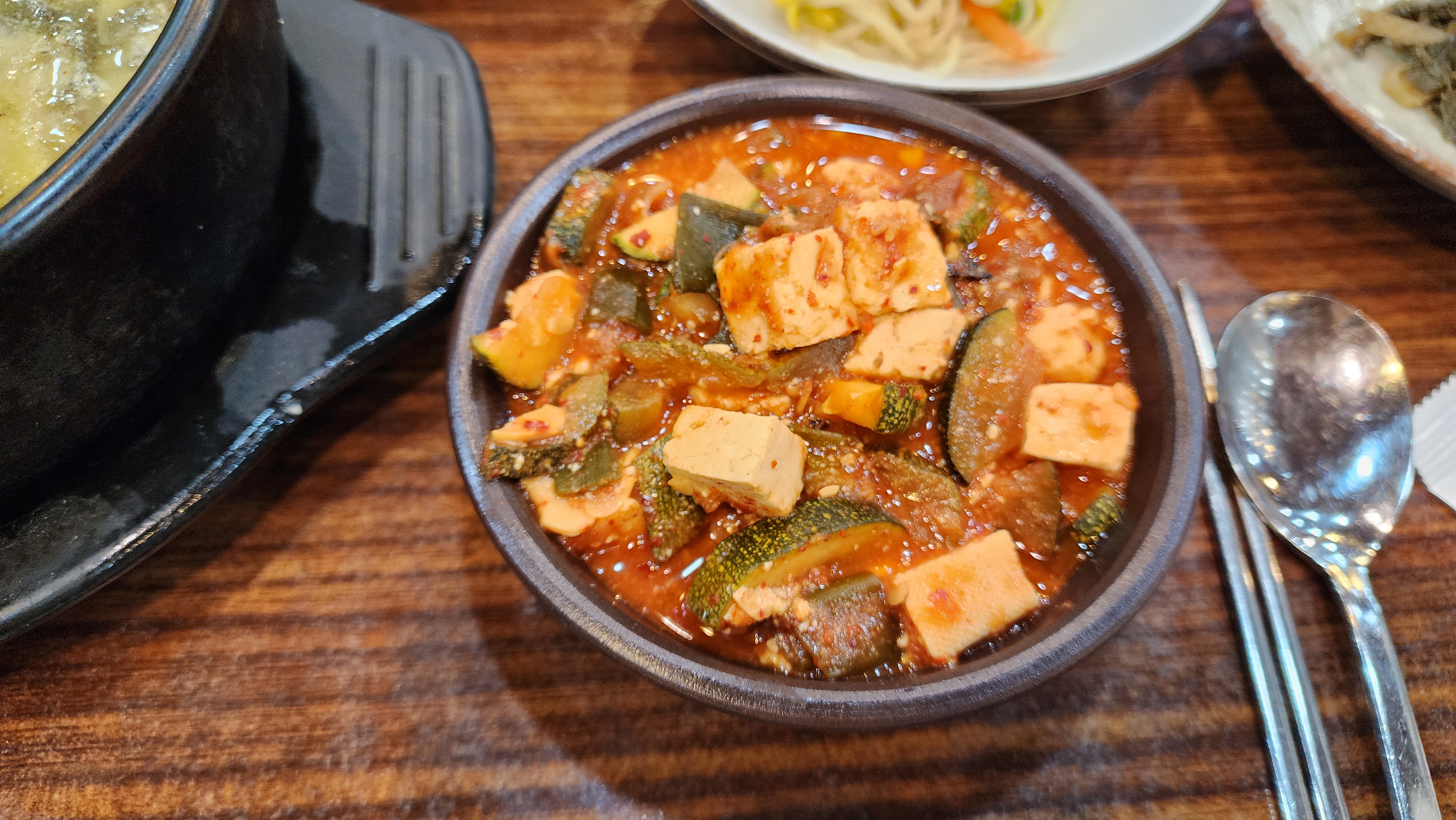 애호박, 두부 등이 들어간 강된장이 참 맛있었는데요 곤드레나물밥에 쓱쓱 비벼먹기 좋았어요.