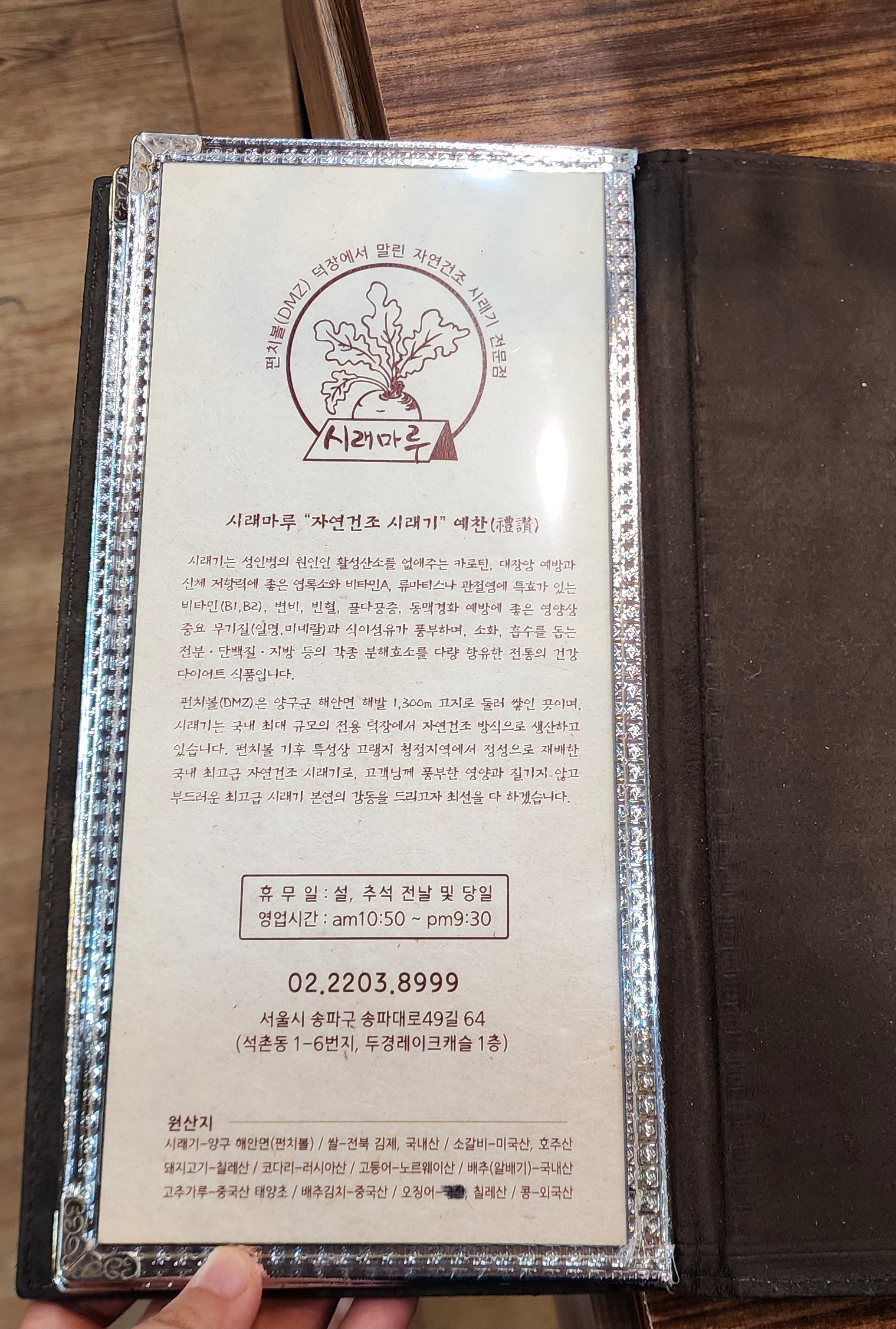 [ 송파 잠실 석촌호수 맛집 ] 시래마루 -들깨 시래기탕, 보쌈정식, 어린이 떡갈비 후기(추석 연휴 휴무 정보 포함) 본문