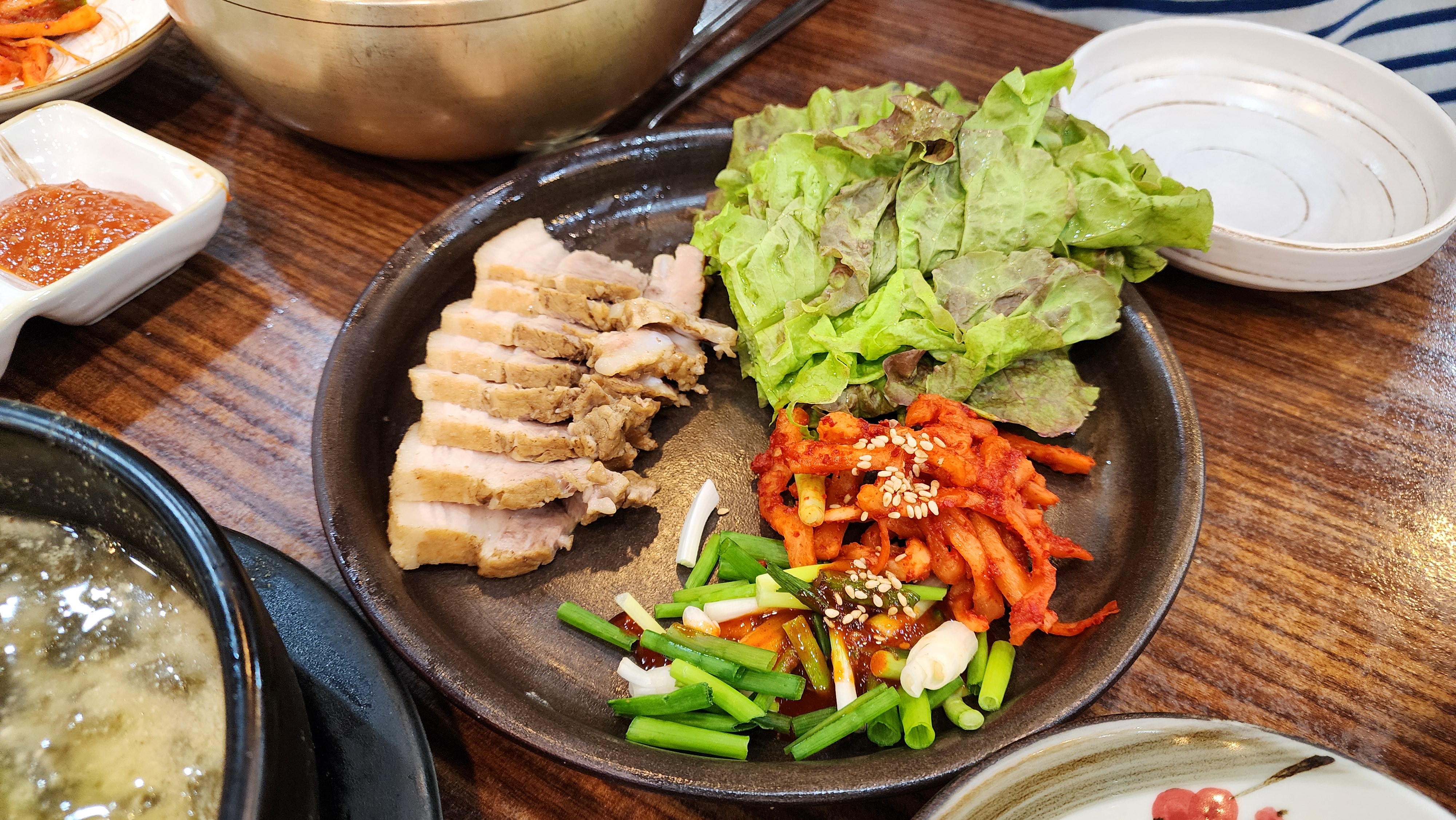 고기도 잘 삶아져 나왔고, 같이 나오는 파무침이나 무김치가 맛있었어요.