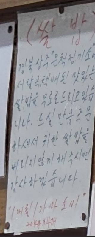 밥은 경북 상주에 은척 정미소에서 탈곡된 쌀밥을 무료로 제공하고 있다고 나와있더군요.