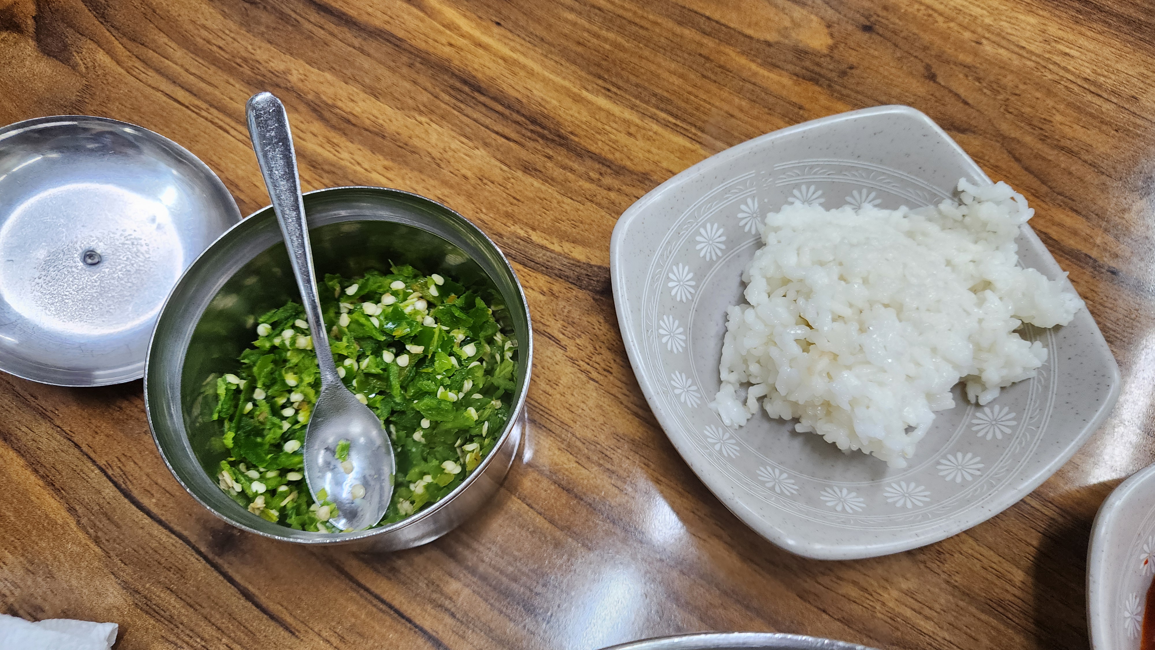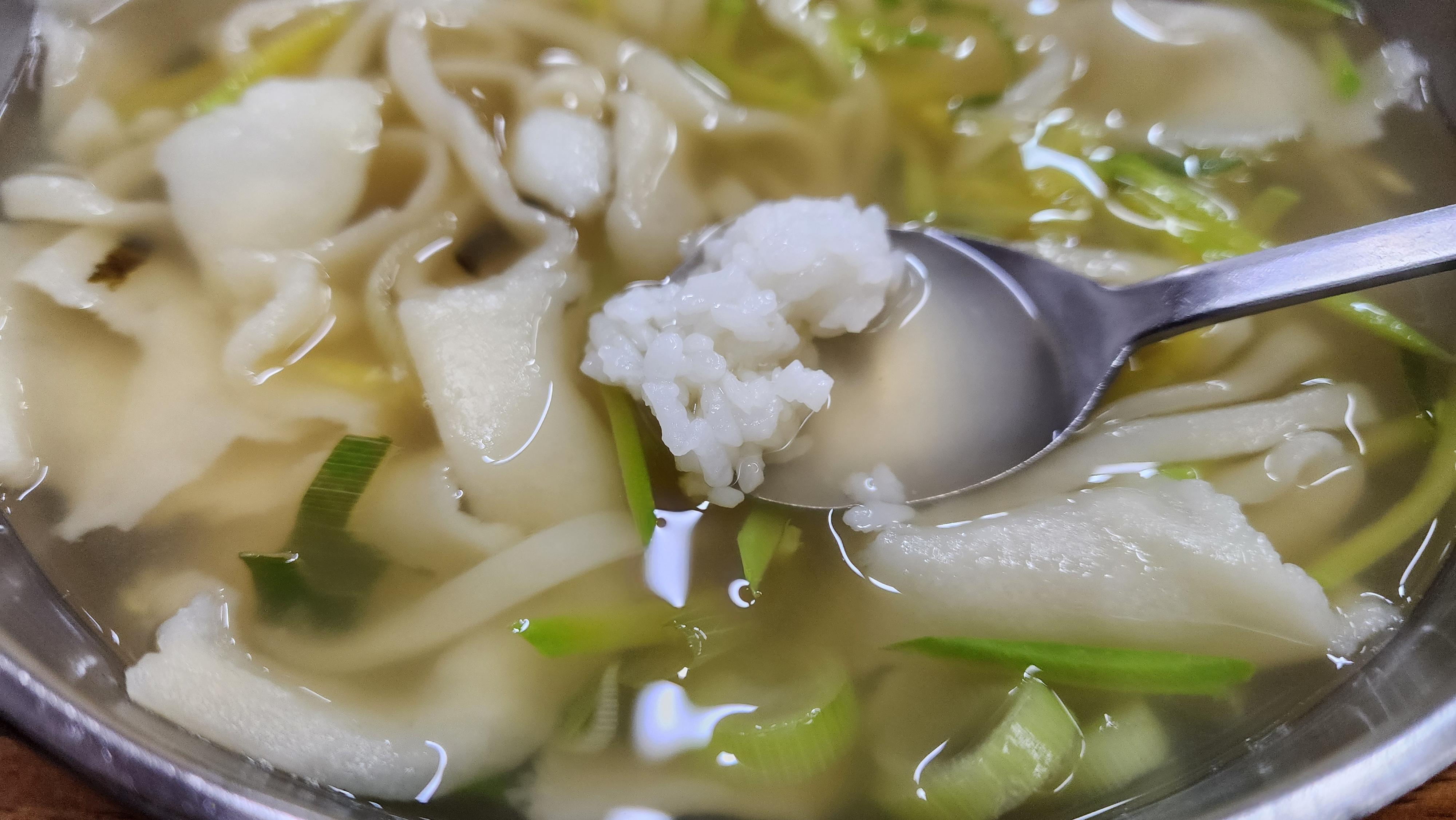 수제비와 칼국수 양이 넉넉하지만 멸치국물이 맛있어서 밥을 부르니까요 밥도 함께 드셔보셔요.
