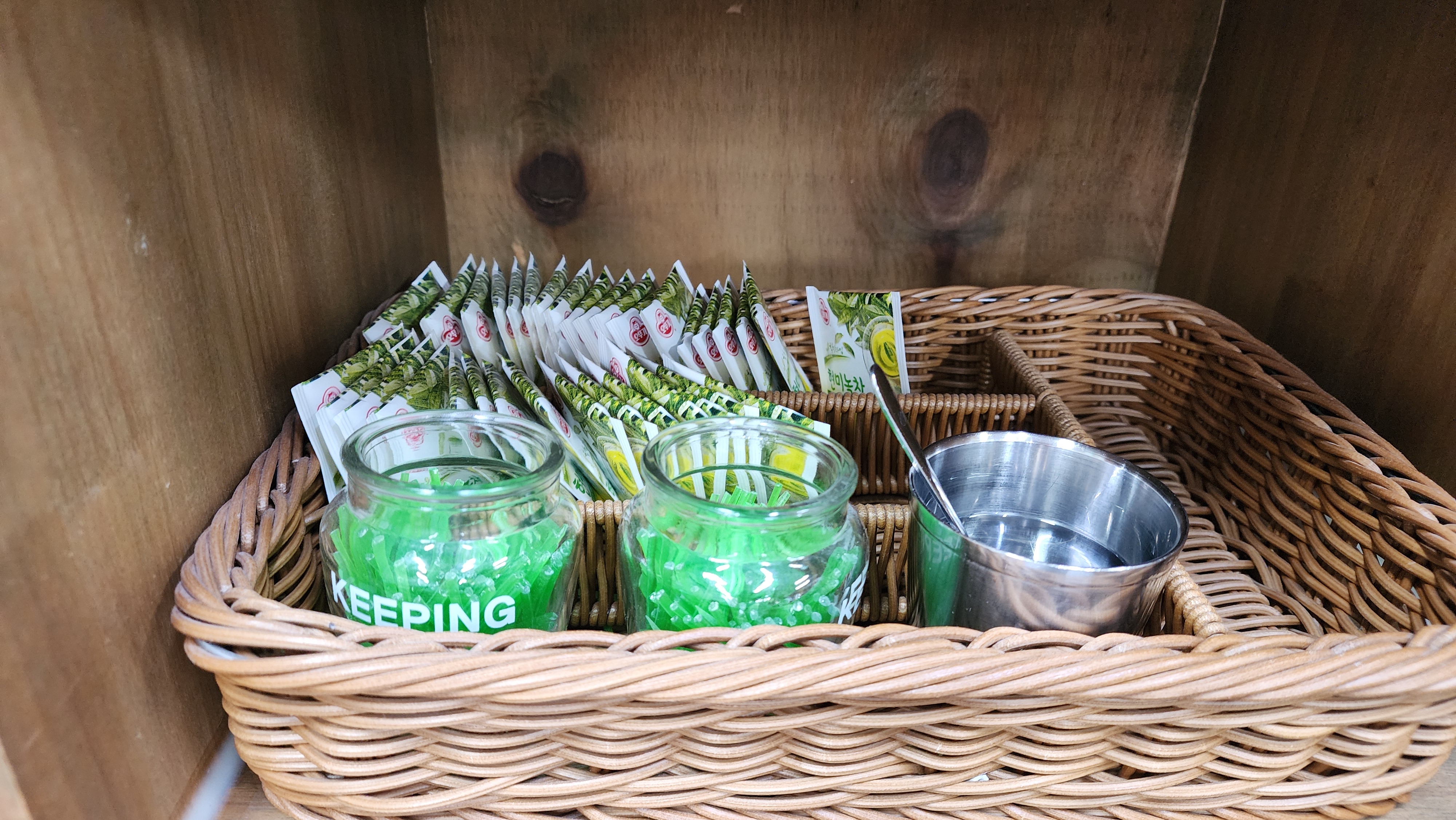 정수기와 차, 이쑤시개등도 놓여있었는데 물은 셀프였어요.