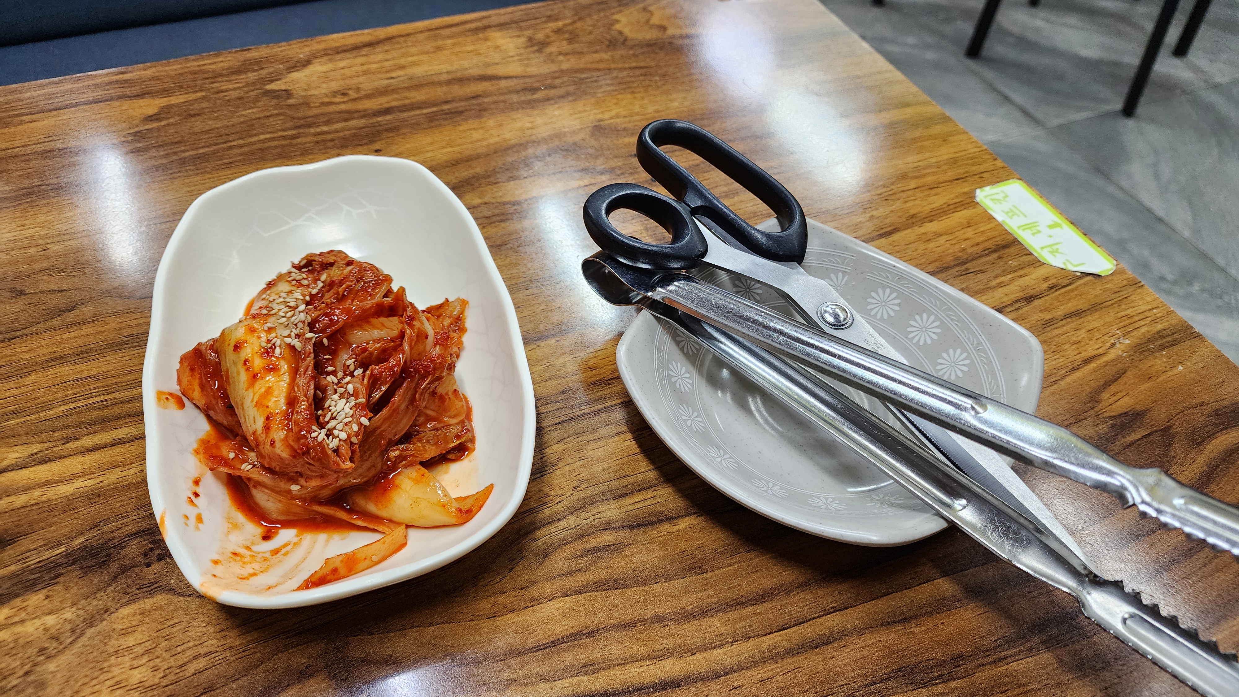 배추김치와 집게 가위 먼저 가져다주시더군요.