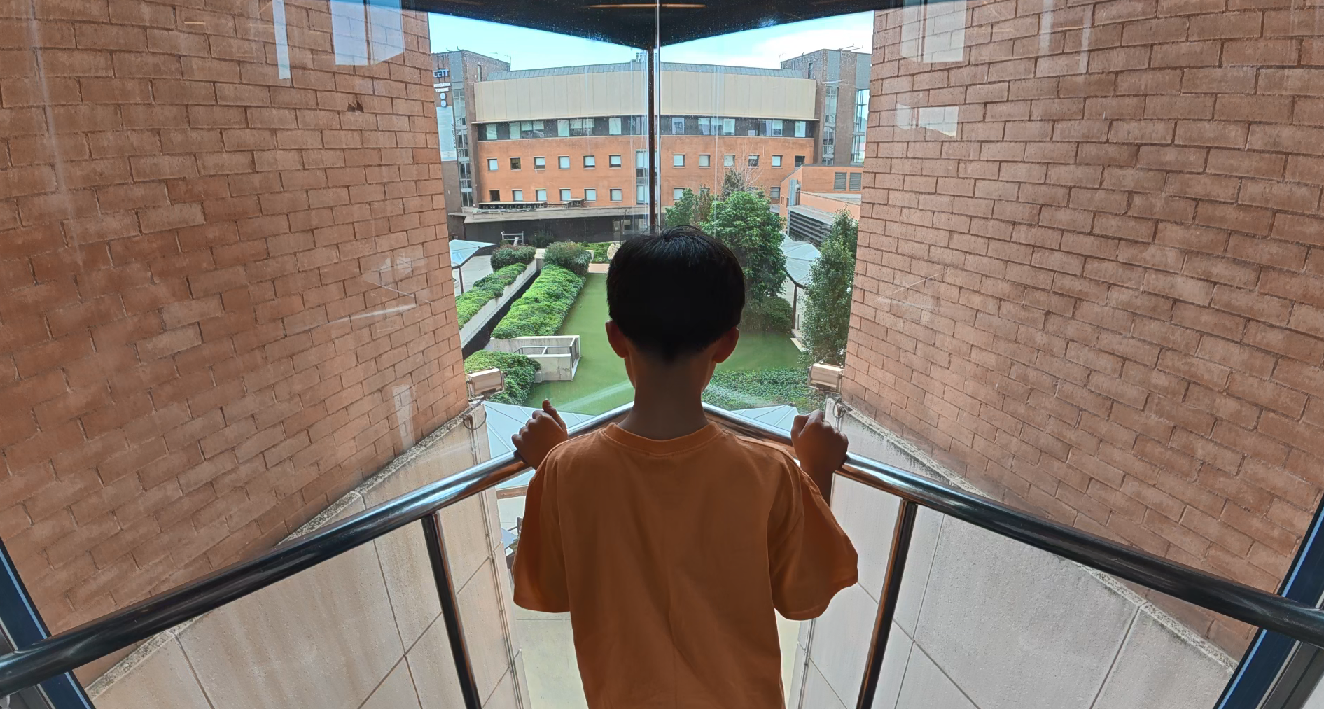엘리베이터는 3대나 운행해서 편리하게 이용했고 정원이 보이는 유리 엘리베이터라 동글이가 바깥구경 신나게 했어요.