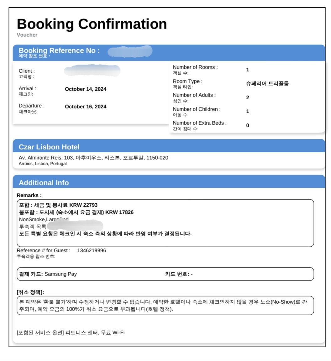 호텔 바우처와 여권 확인 후 체크인을 진행했어요.