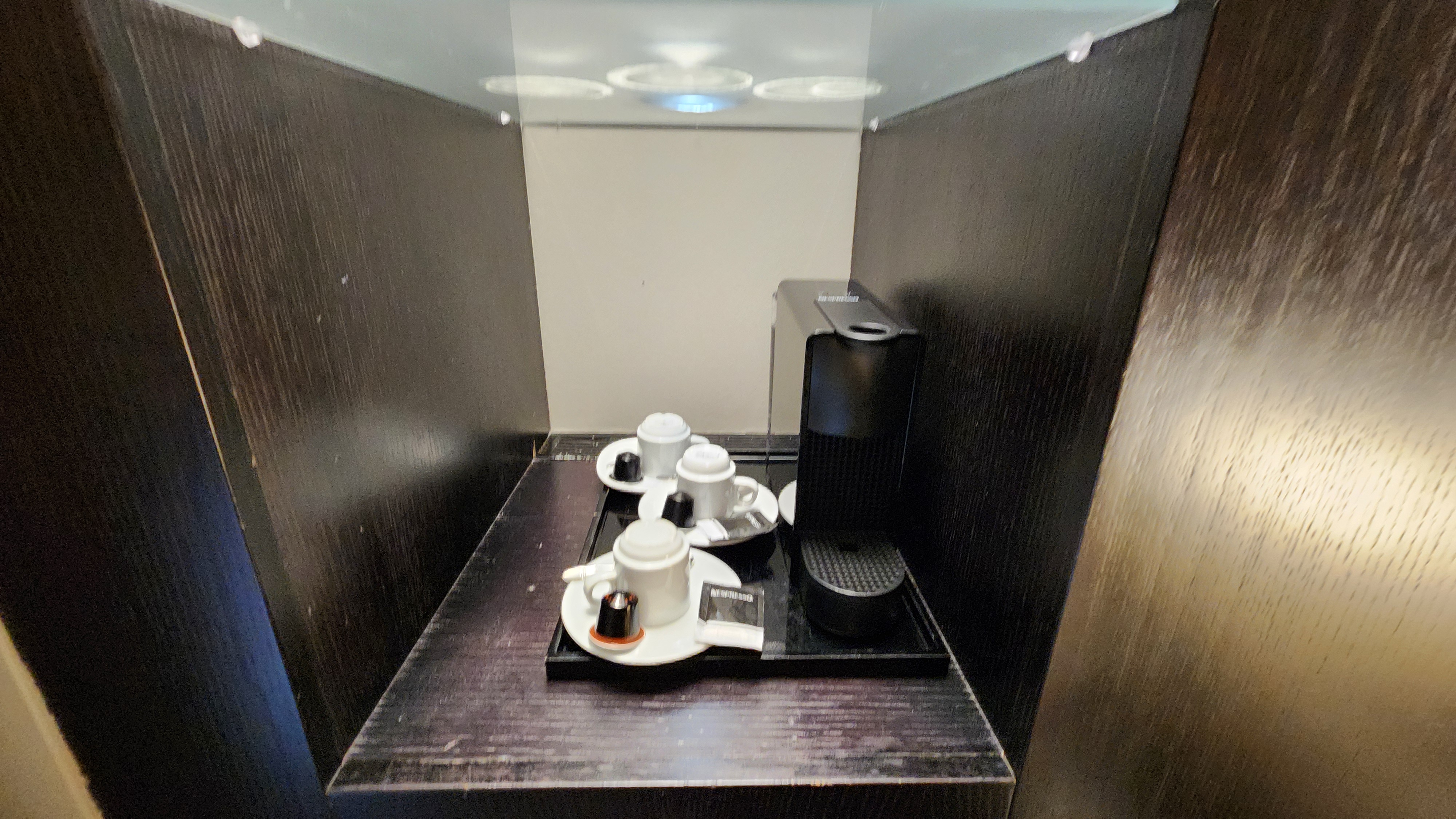 큰 물 한병과 캡슐커피가 제공되었고 냉장고가 있었지만 아무것도 들어있지 않았어요.(미니바 없음)