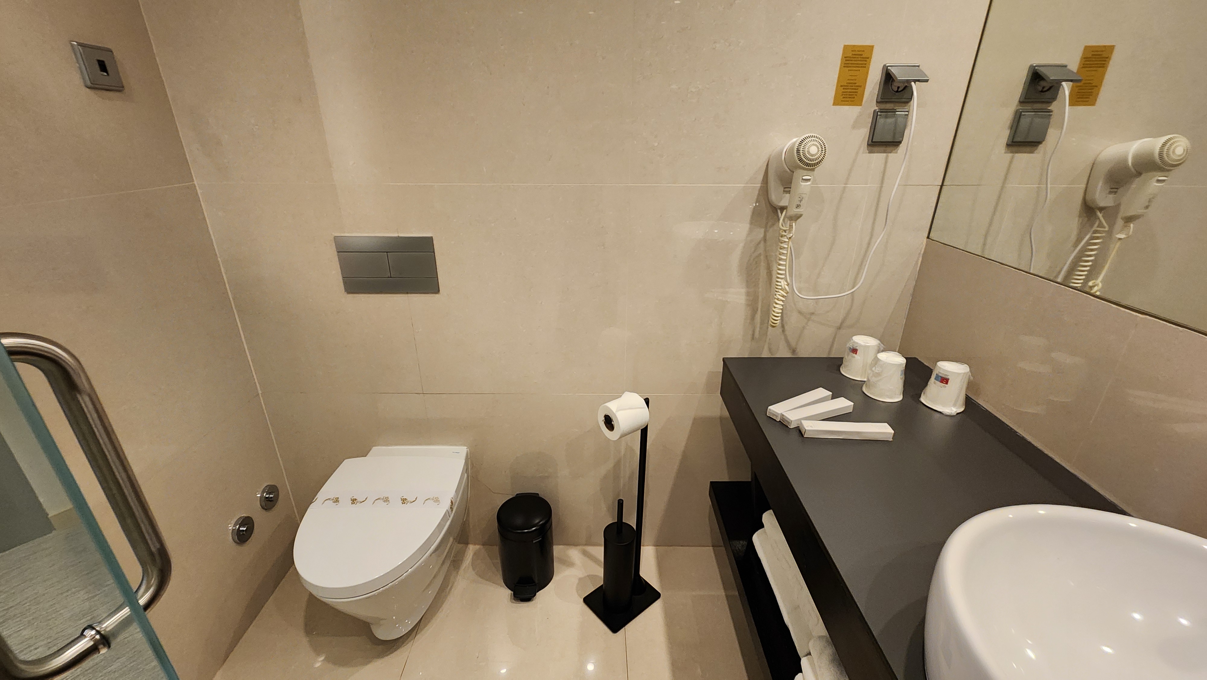 객실이 넓지는 않았지만 4성급 호텔 답게 위생 청결 면에서 높은 점수를 주고 싶고요 웰컴드링크 등의 서비스 덕분에 기분 좋은 투숙 시작을 할 수 있었어요.