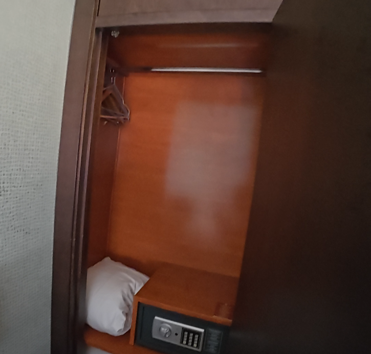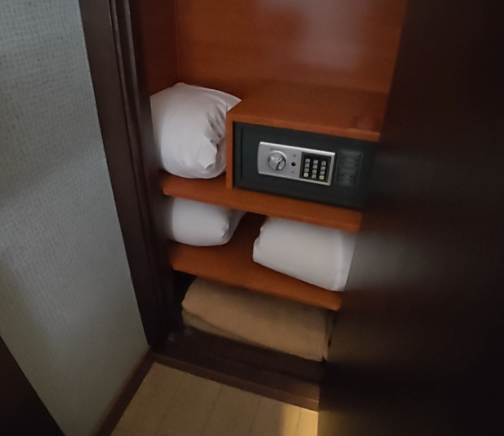 벽장이 하나 있었는데 옷걸이랑 여분의 침구, 금고, 담요가 있었어요.