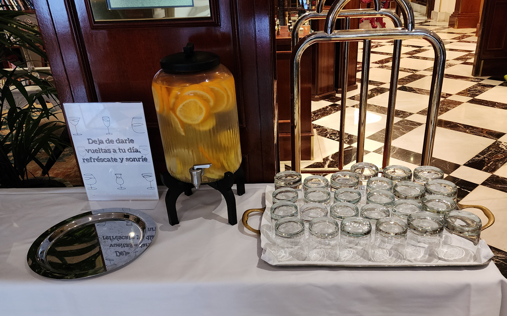 저희가 갔던 날은 좀 늦은 시간에 체크인을 해서 없었는데 체크아웃 하는 날 보니까 이렇게 웰컴드링크를 제공하고 있더군요.