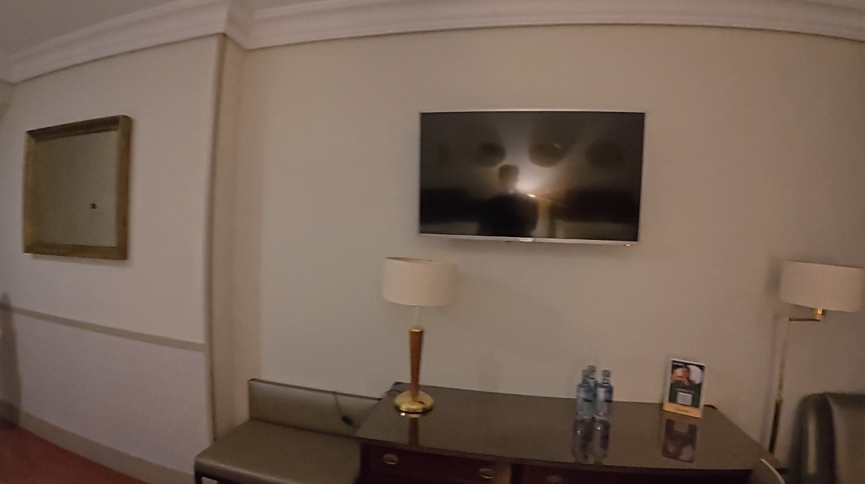 벽걸이 티비와 작은 벤치와 책상, 테이블이 있고 책상 하단부에 냉장고가 있었는데 미니바도 같이 있었어요.