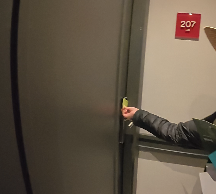 카드키를 대고 들어갔어요.