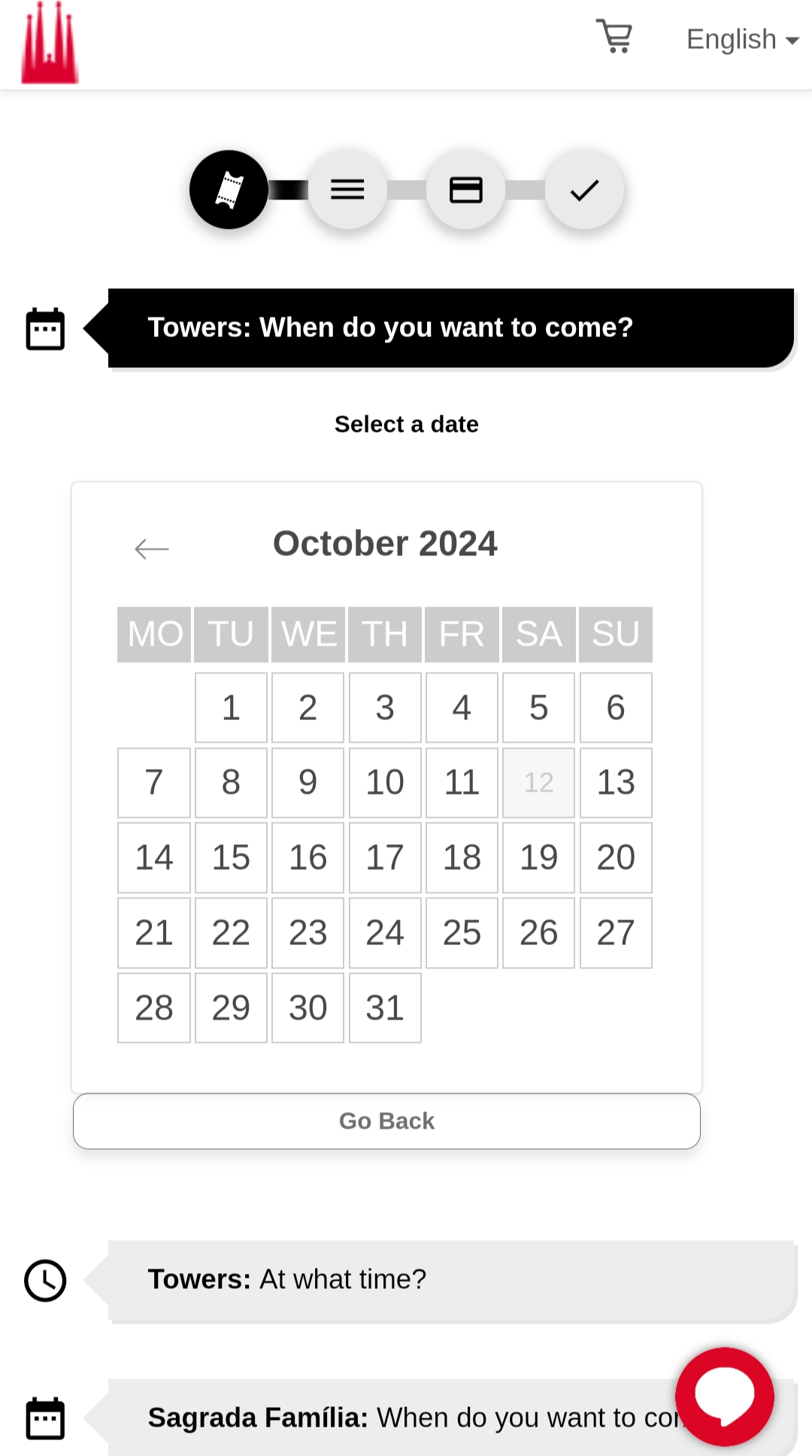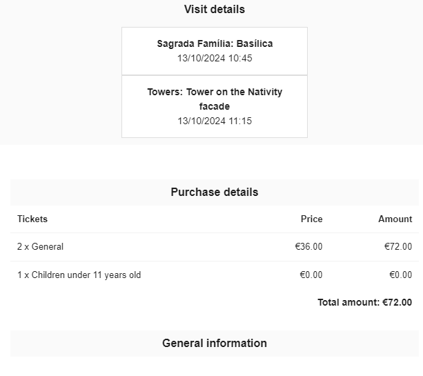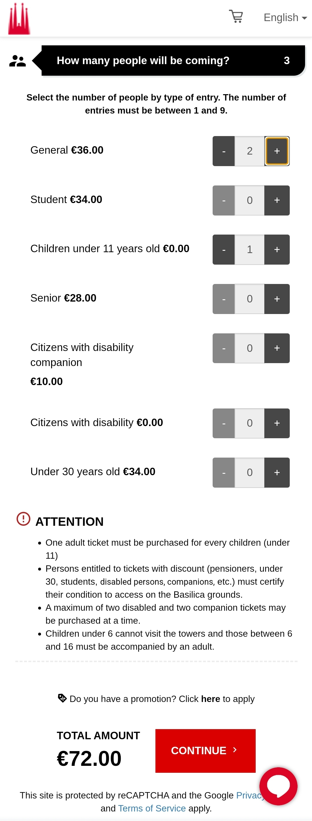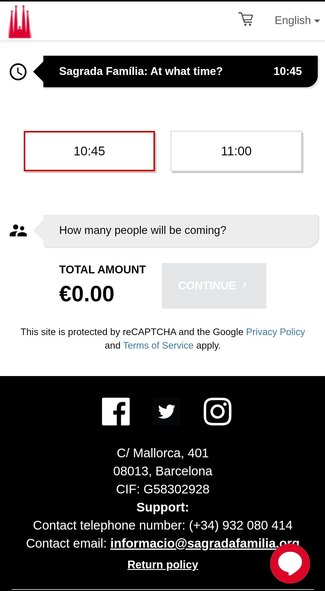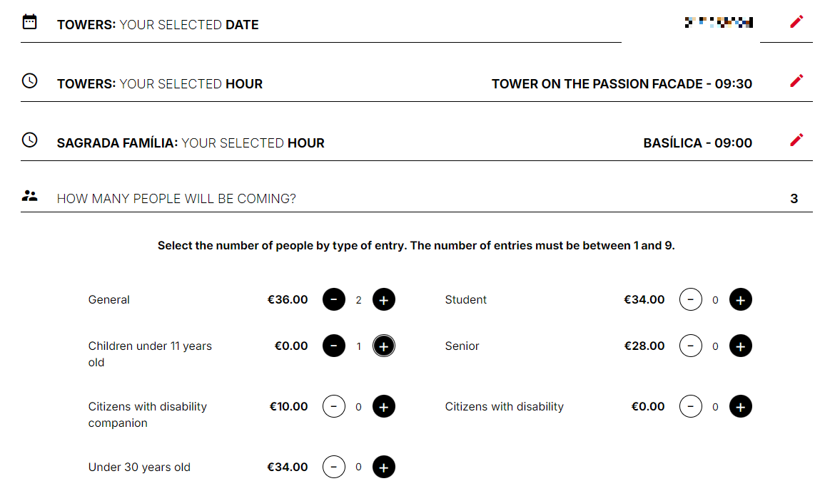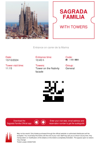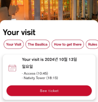 저는 Tower on the Nativity facade를 선택했고 성당입장시간은 타워 들어가기 30분 전으로 선택했어요.