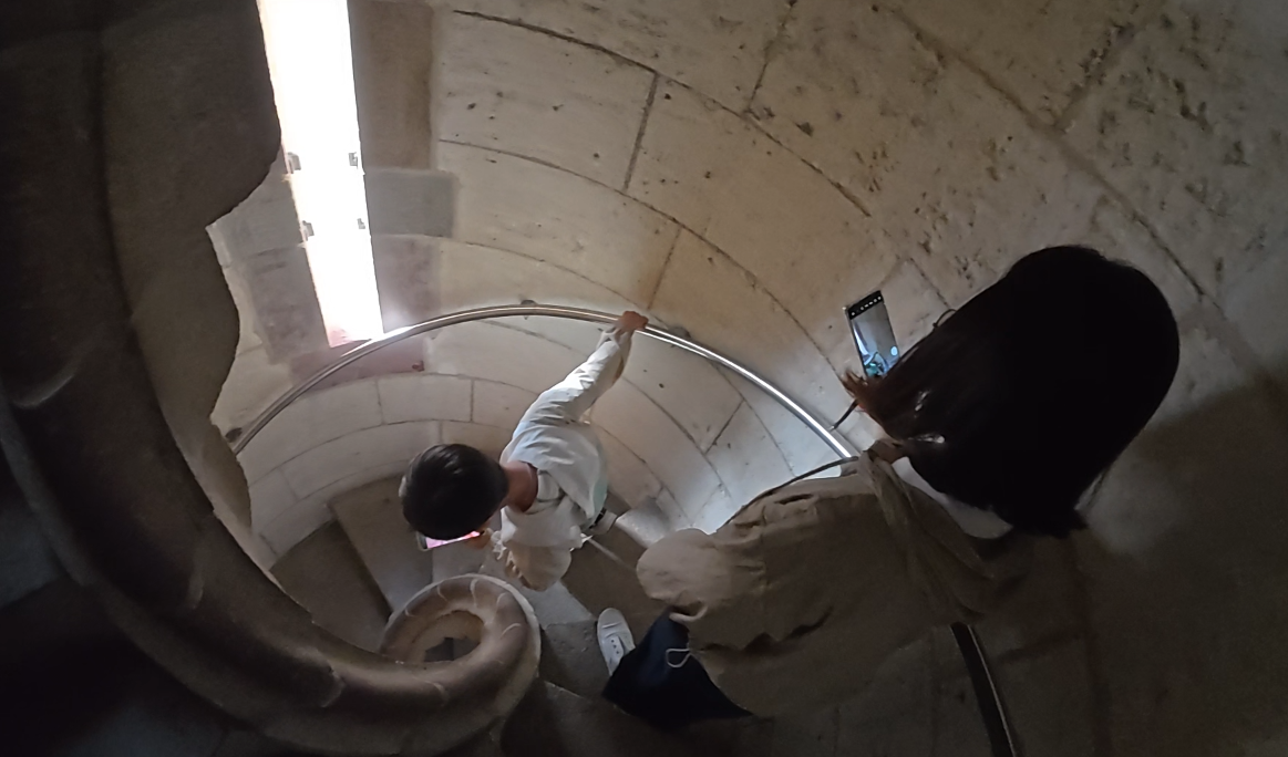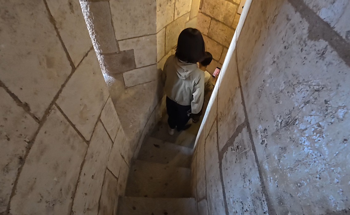 내려올 때는 나선형 계단으로 뱅글뱅글 걸어 내려와요.