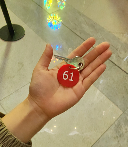 타워 엘리베이터를 타기 전에 배낭 등 가방은 열쇠 사물함에 보관하도록 안내 받았어요.