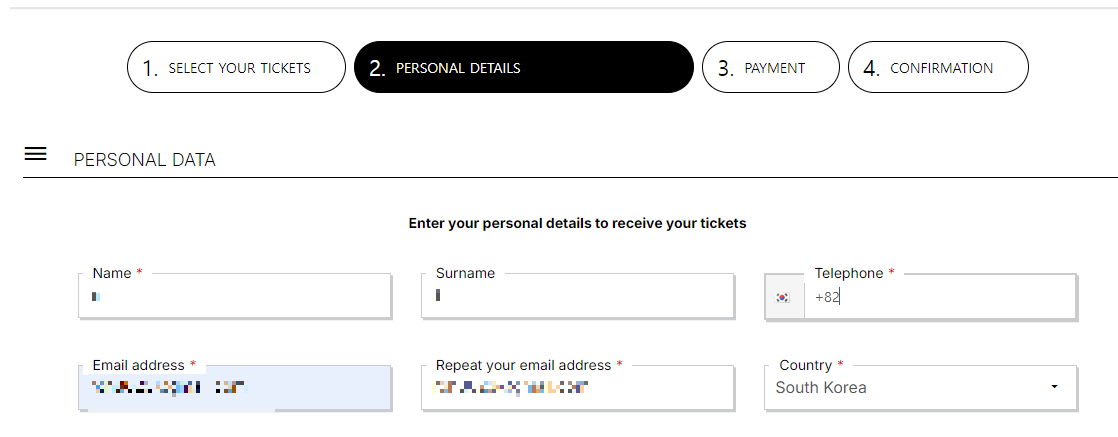 개인정보 입력 후 카드 결제를 하면 예약이 완료됩니다.