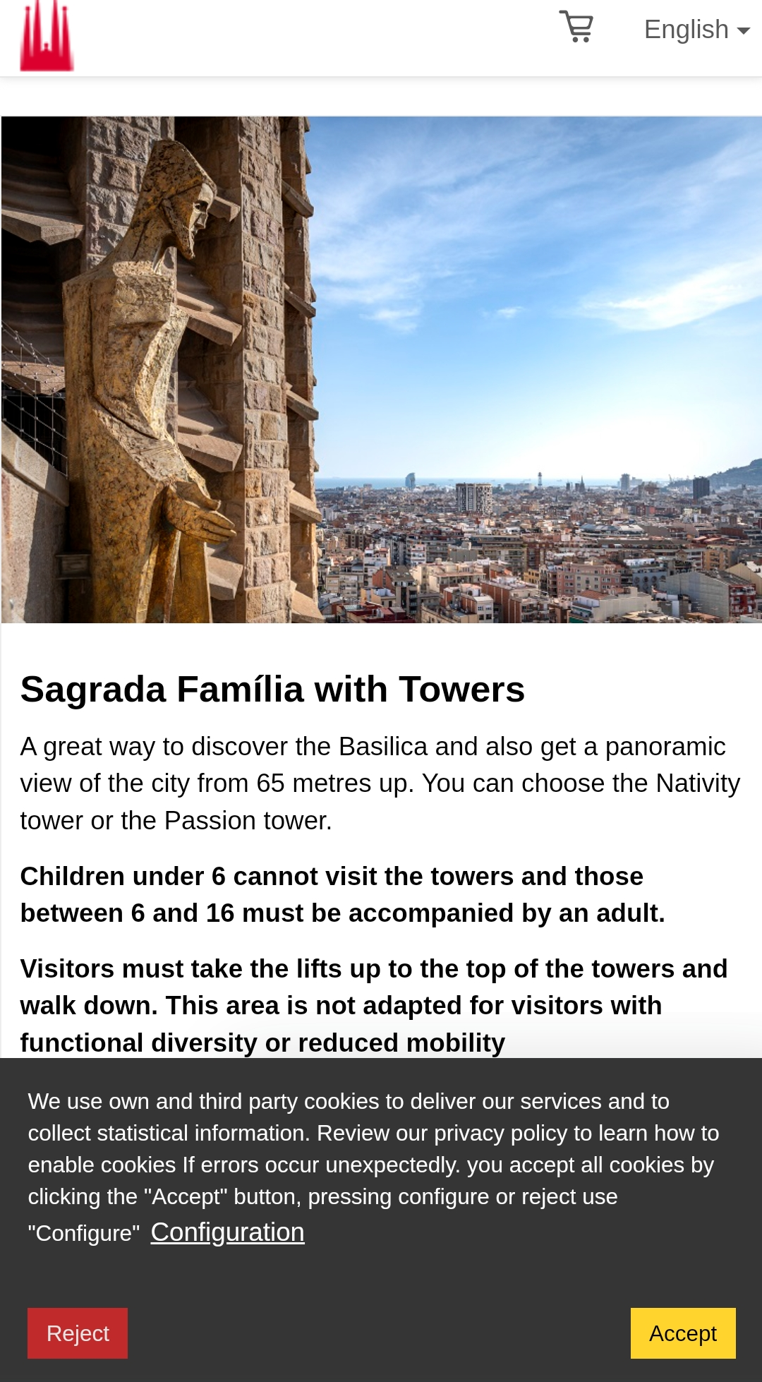 티켓 종류가 여러가지 있지만 타워 올라가실 분들은 Sagrada Familia with Towels 선택하시면 됩니다.
