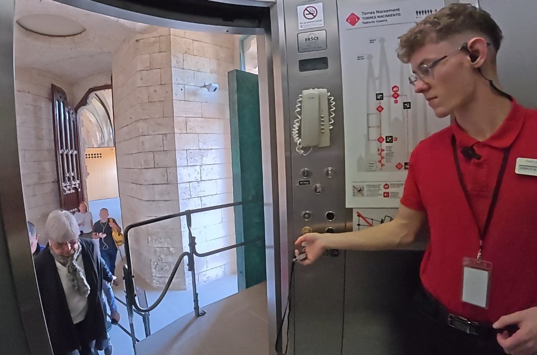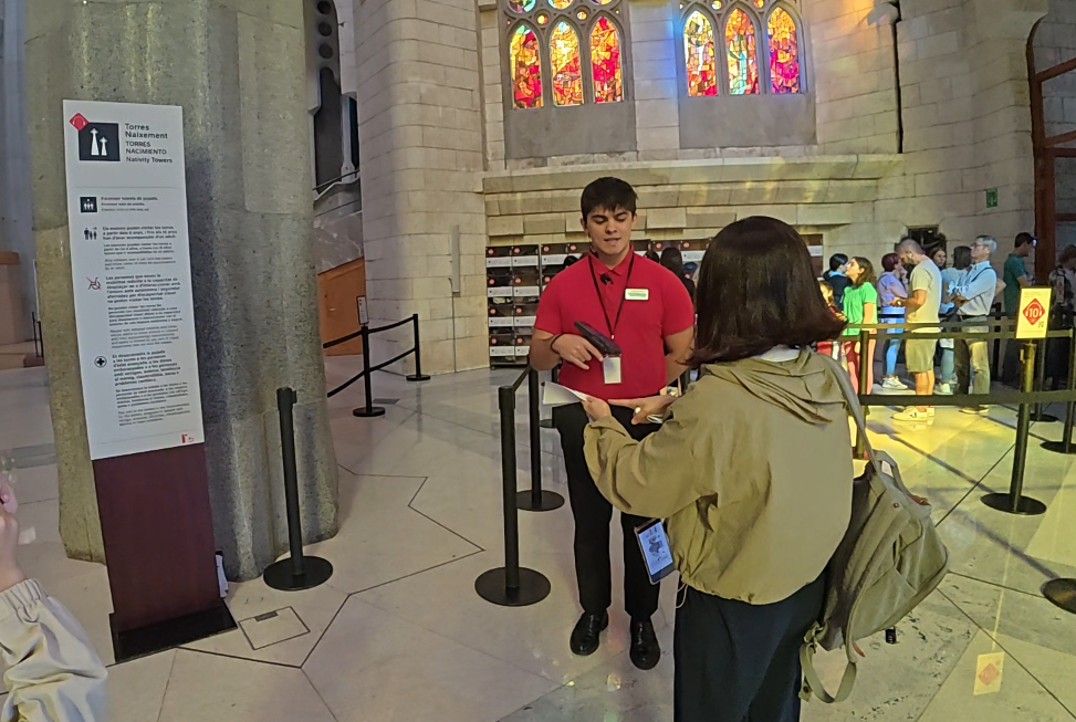 타워 입장하는 곳은 두곳이 있는데 여기는 Tower on the Nativity facade 쪽 입장하는 곳이고요 입장권 바코드 한번 더 확인하더라구요.