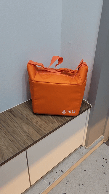 반찬 배달 가방이 처음에는 회색이었는데 이번에 예쁜 주황색으로 바뀌어서 더 맘에 들어요.