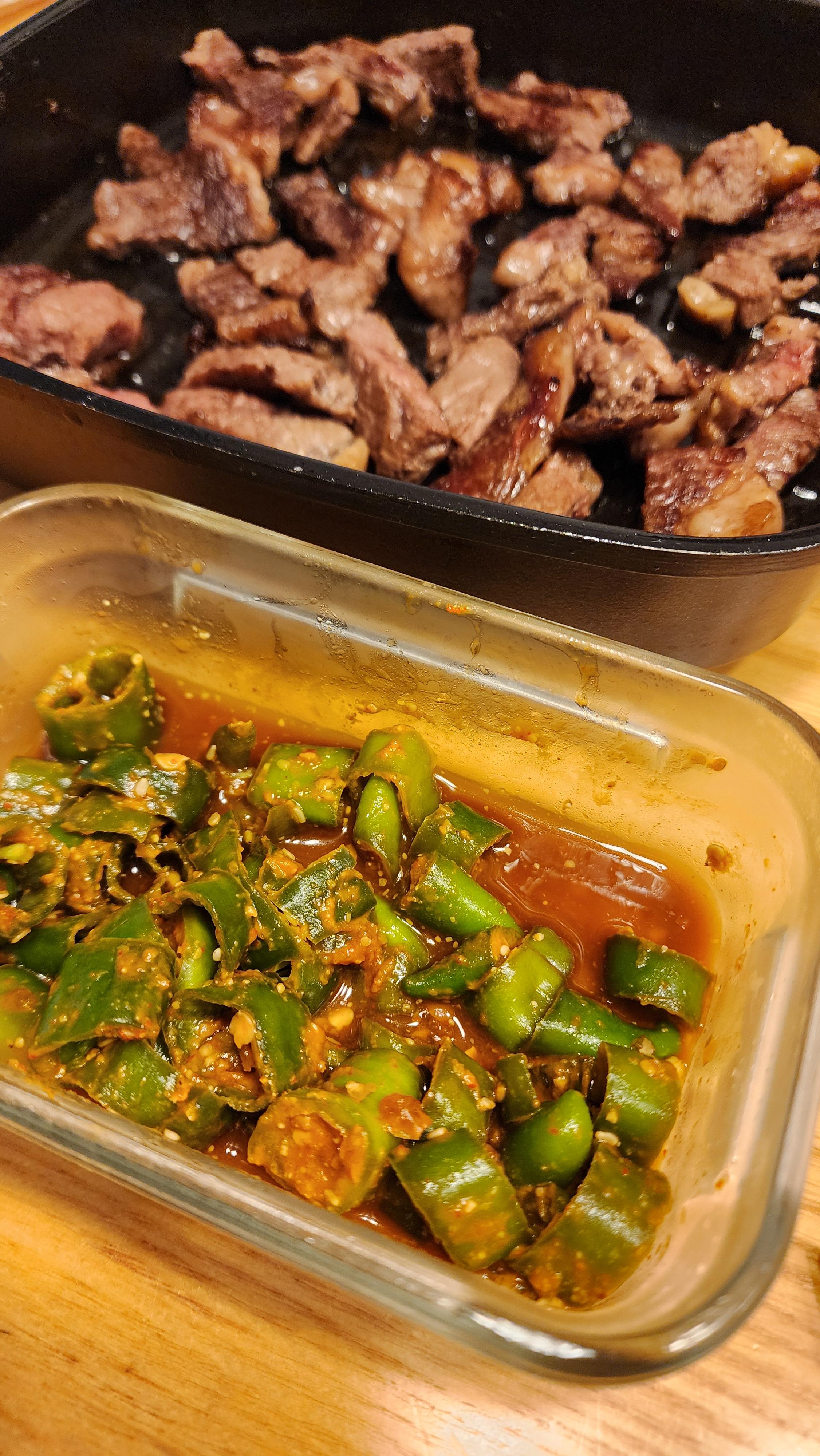 아삭이고추 된장무침이 맛있어서 고기를 일부러 구웠던 날도 있네요.