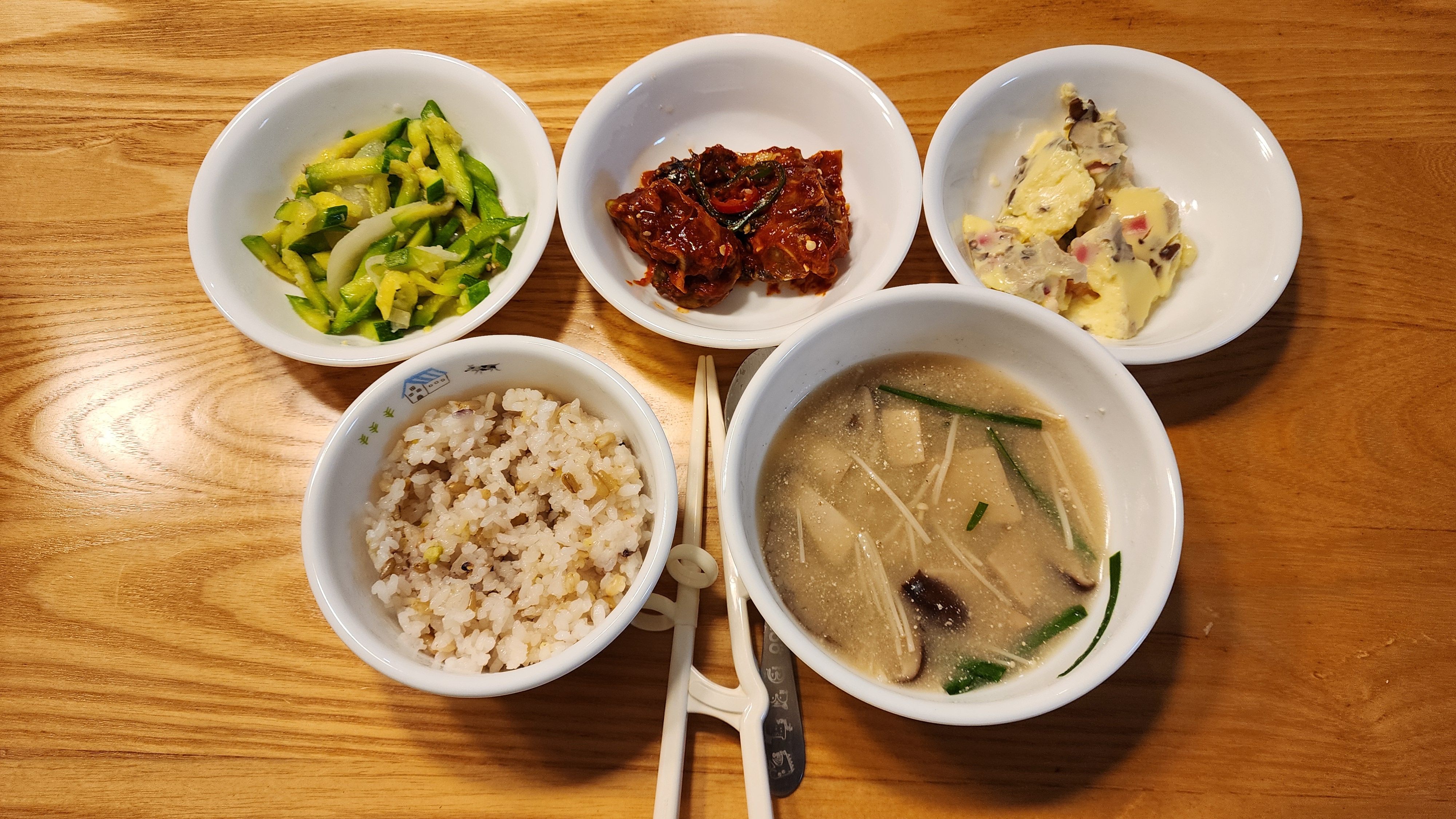 반찬은 글라스락에 담겨 오고 반찬에 따라 장류나 청양고추 등이 더 오기도 해요.