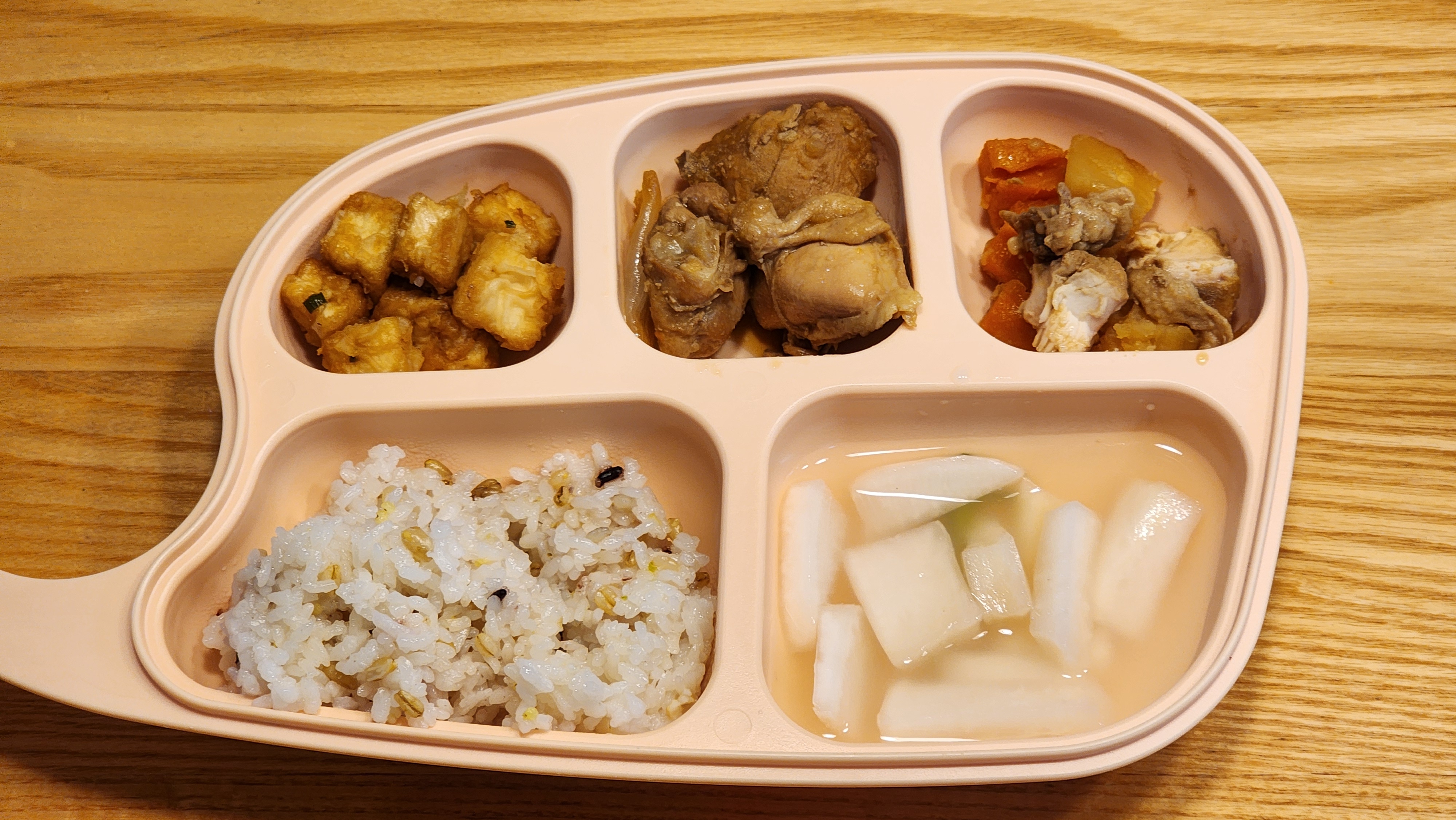- 주3회 식단이 있는데, 저는 주2회(화, 금) 이용하고 있거든요. 월화/ 수목/ 금 중에 아이가 더 잘먹을 수 있을 것 같은 메뉴가 있으면 요일을 바꿔 신청할 수 있는 것도 좋았어요. 동글이가 좋아하는 반찬이 다른 요일에 있을 때는 월, 수 이렇게 받아서 먹기도 했어요.