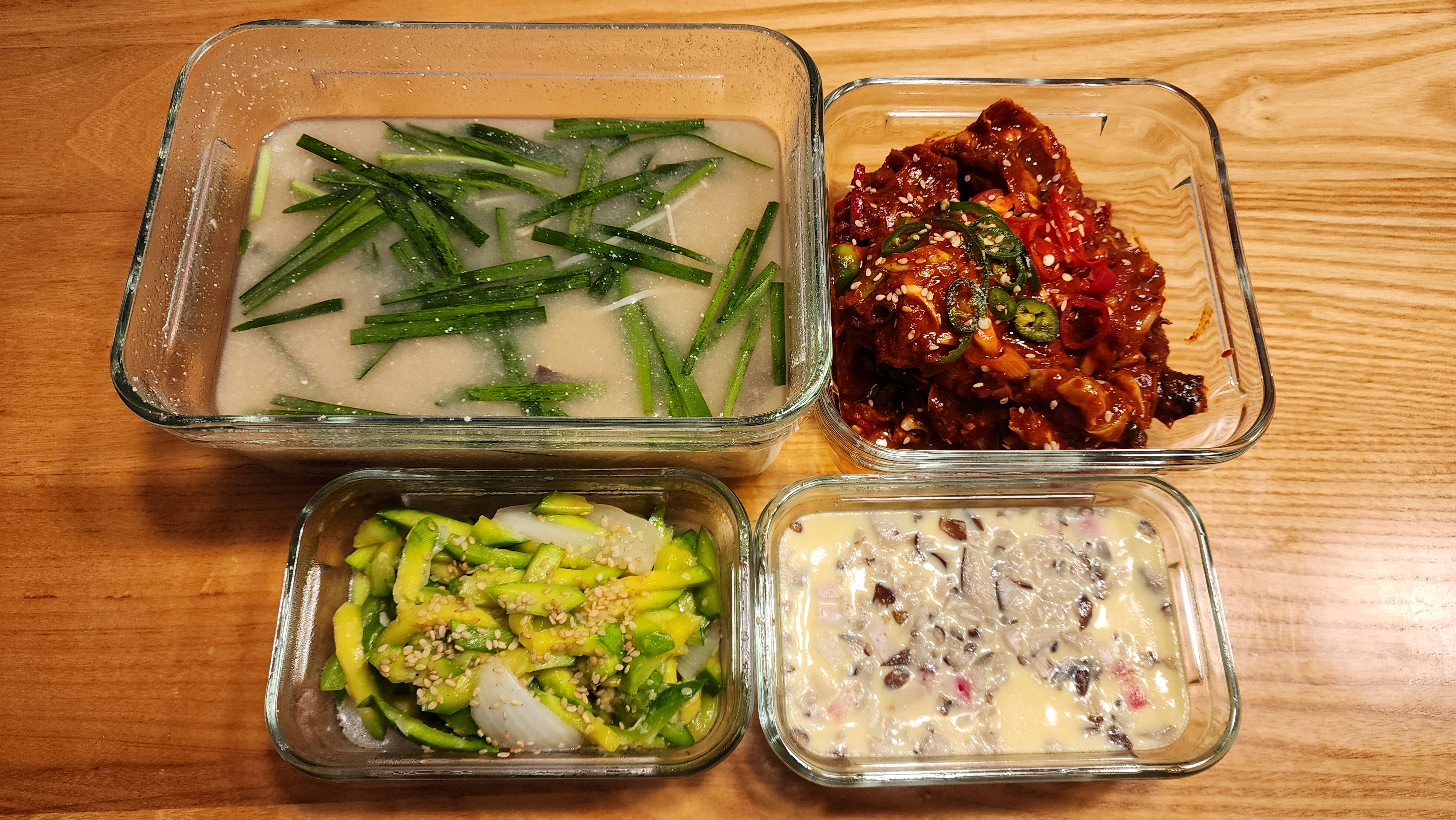 반찬은 글라스락에 담겨 오고 반찬에 따라 장류나 청양고추 등이 더 오기도 해요.