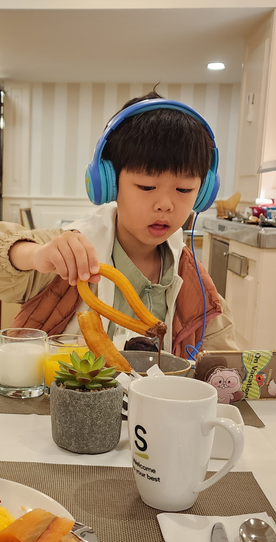 동글이는 스페인 와서 추로스 맛에 푹 빠졌는데 호텔 조식에서 추로스 나온다며 너무 신나했고, 오렌지주스 착즙기계가 너무 신기해서 오렌지 주스를 자꾸 가져오는 바람에 오렌지주스로 배 채웠네요.