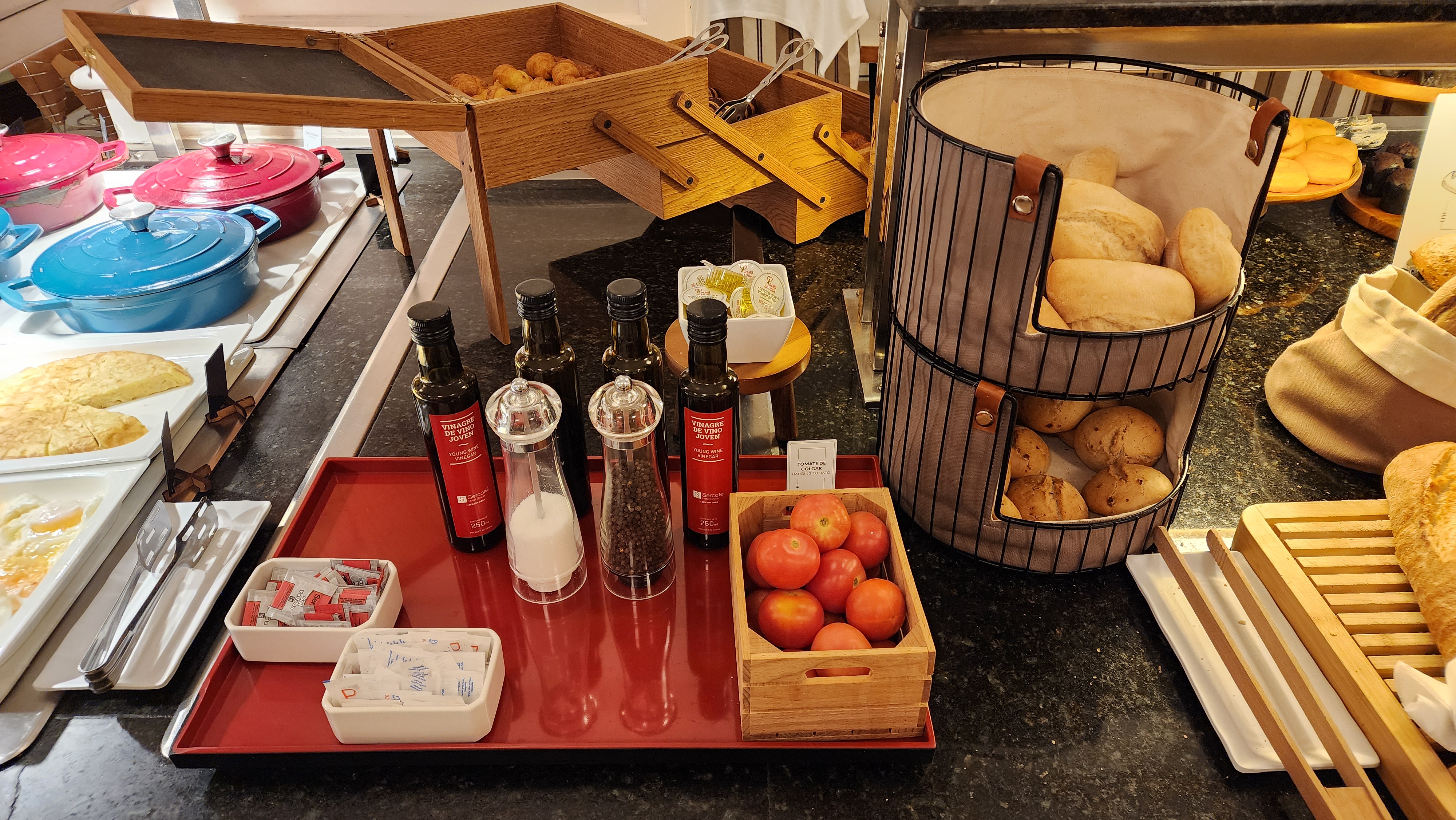 토마토는 채소로 분류되는지 따로 놓여있었고 올리브유와 발사믹식초 등이 제공되었어요.
