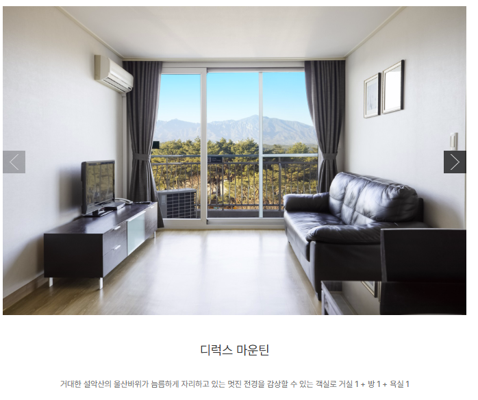 공식 홈페이지에는 울산바위 전경이 보이는 객실로 소개되어 있더군요.
