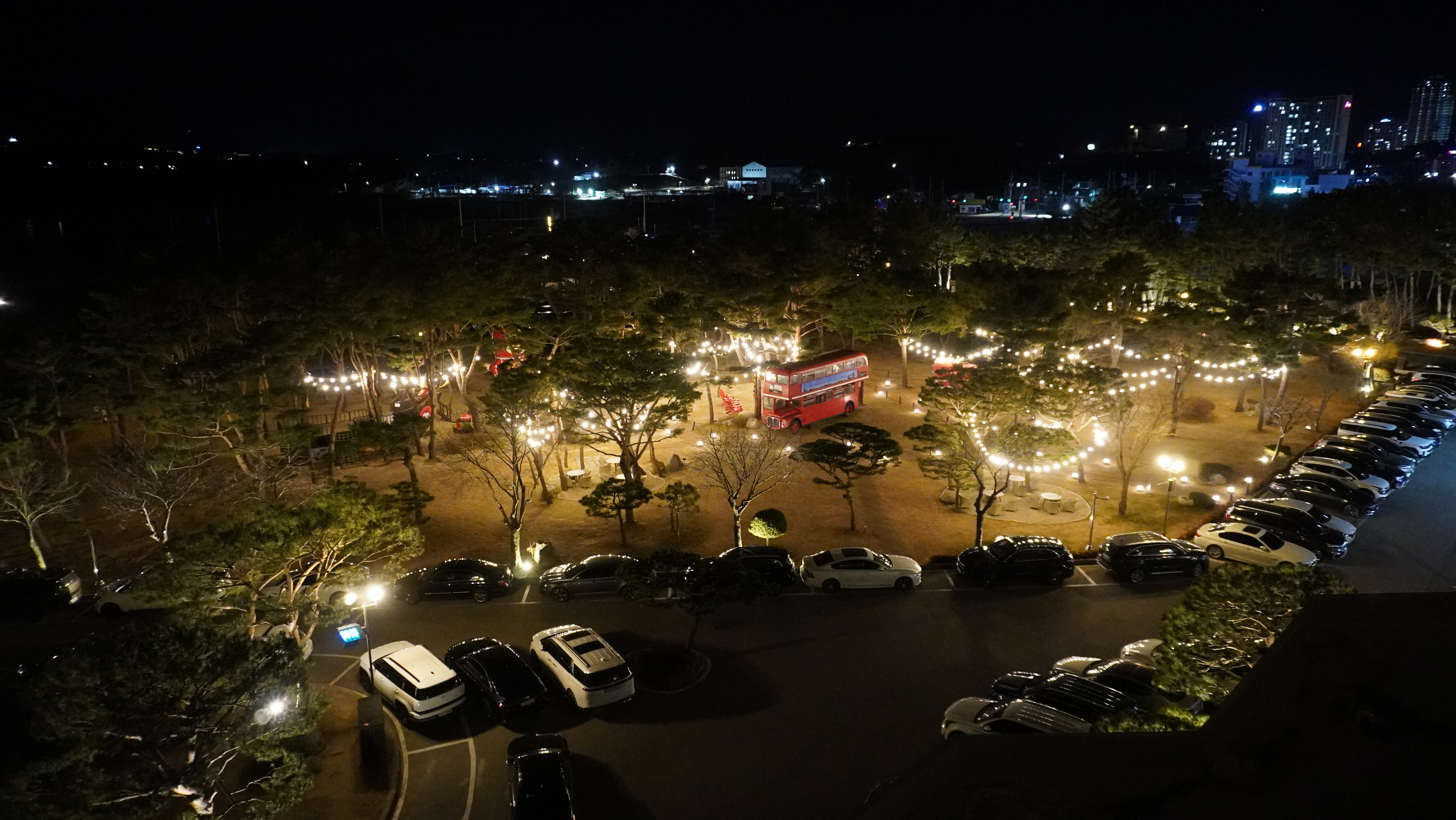 해 있을 때는 바다 구경간다고 나가느라 바깥을 못챙겨봤는데요 밤에 조명켜진걸 보니 너무 멋지더라구요.