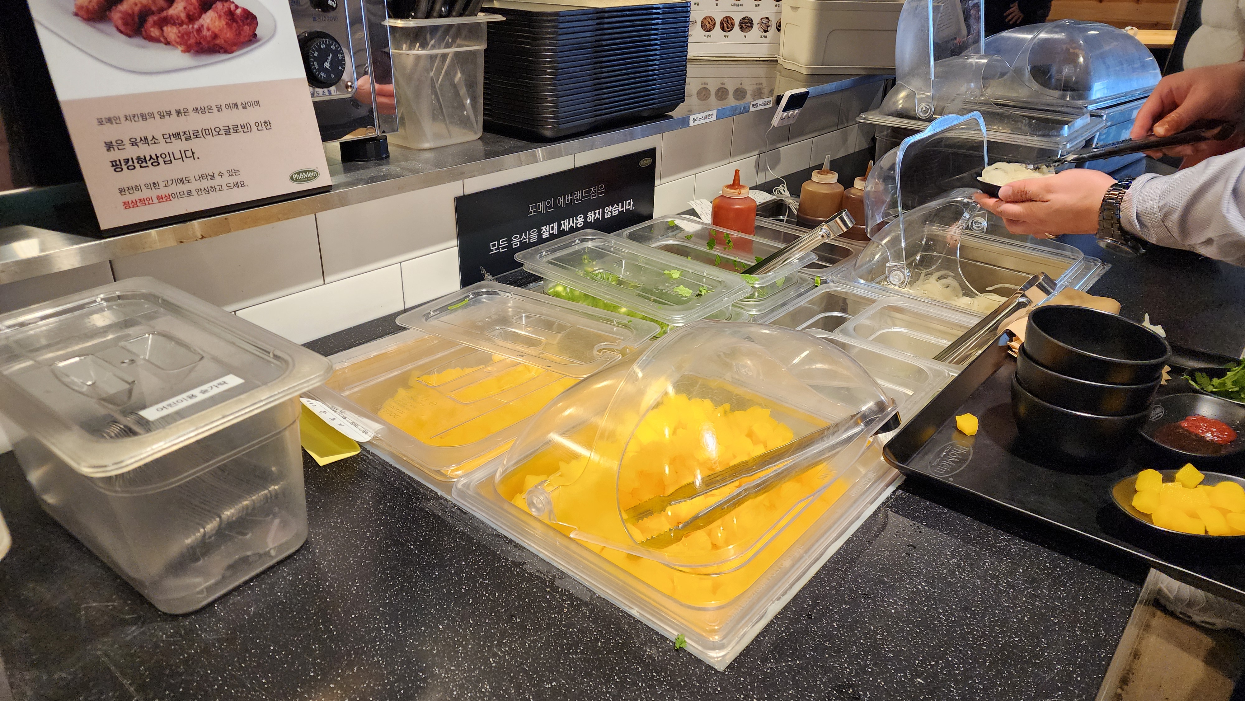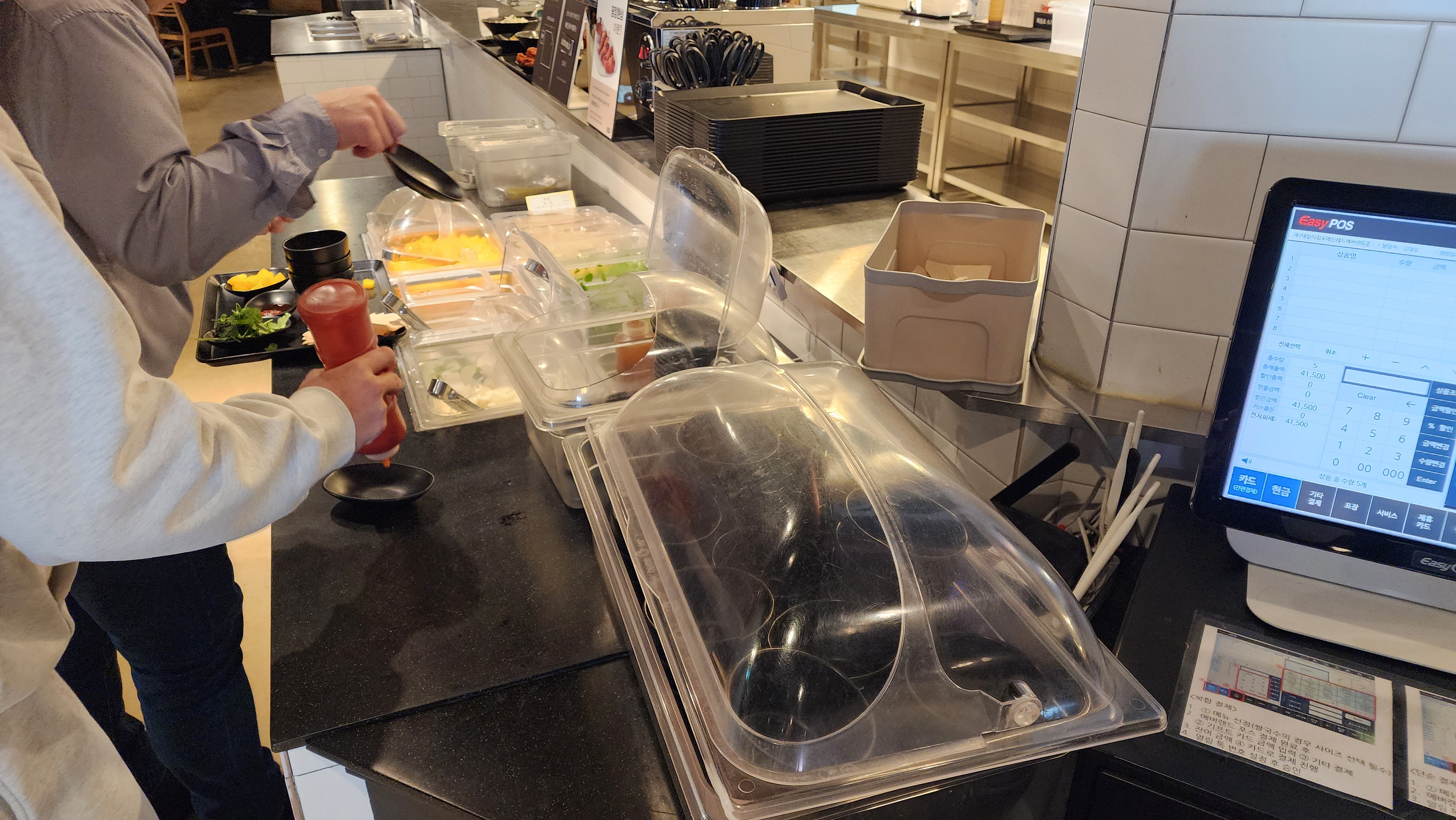 여분 식기와 소스, 밑반찬 등이 서비스 코너에 있었어요.
