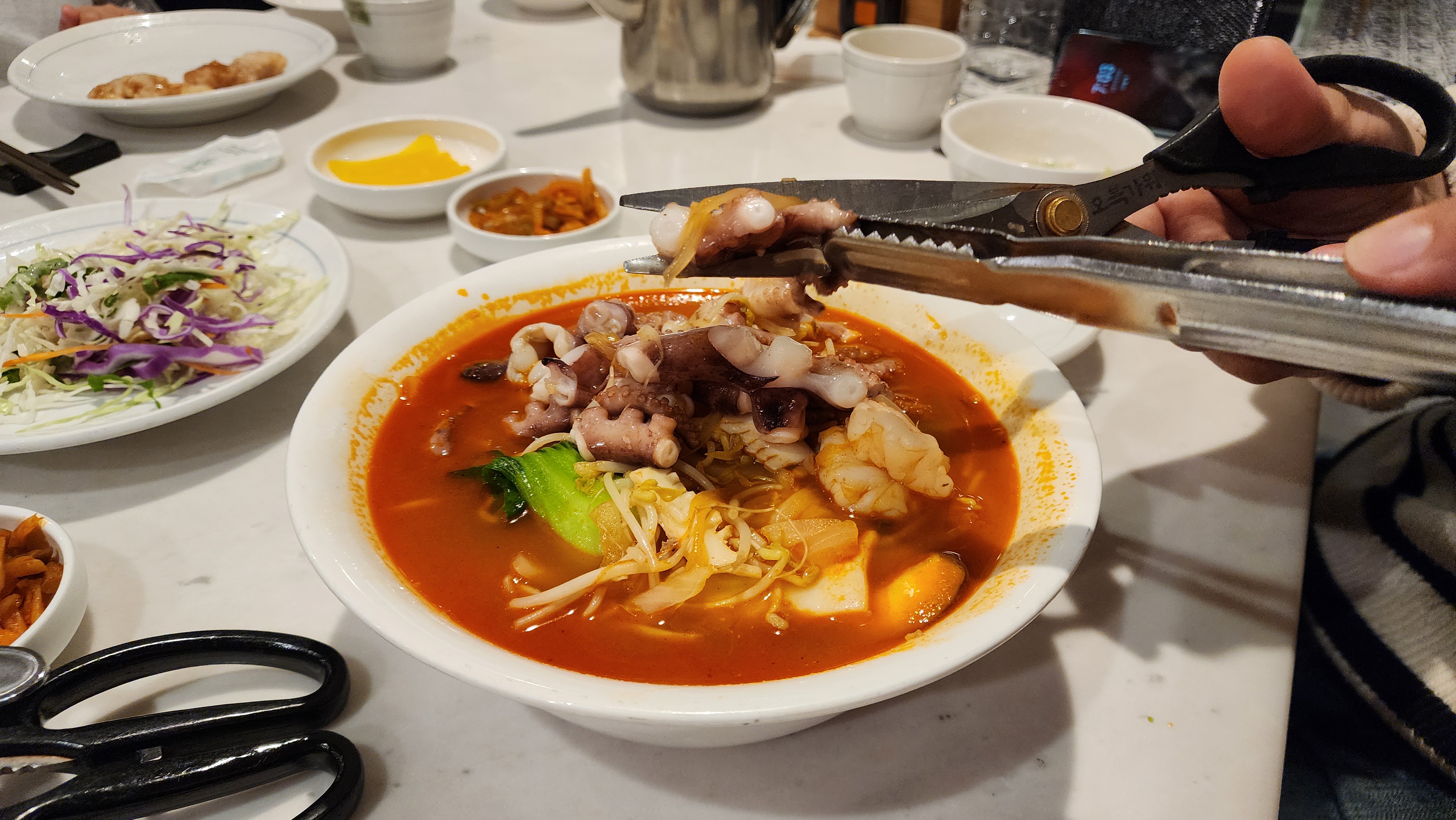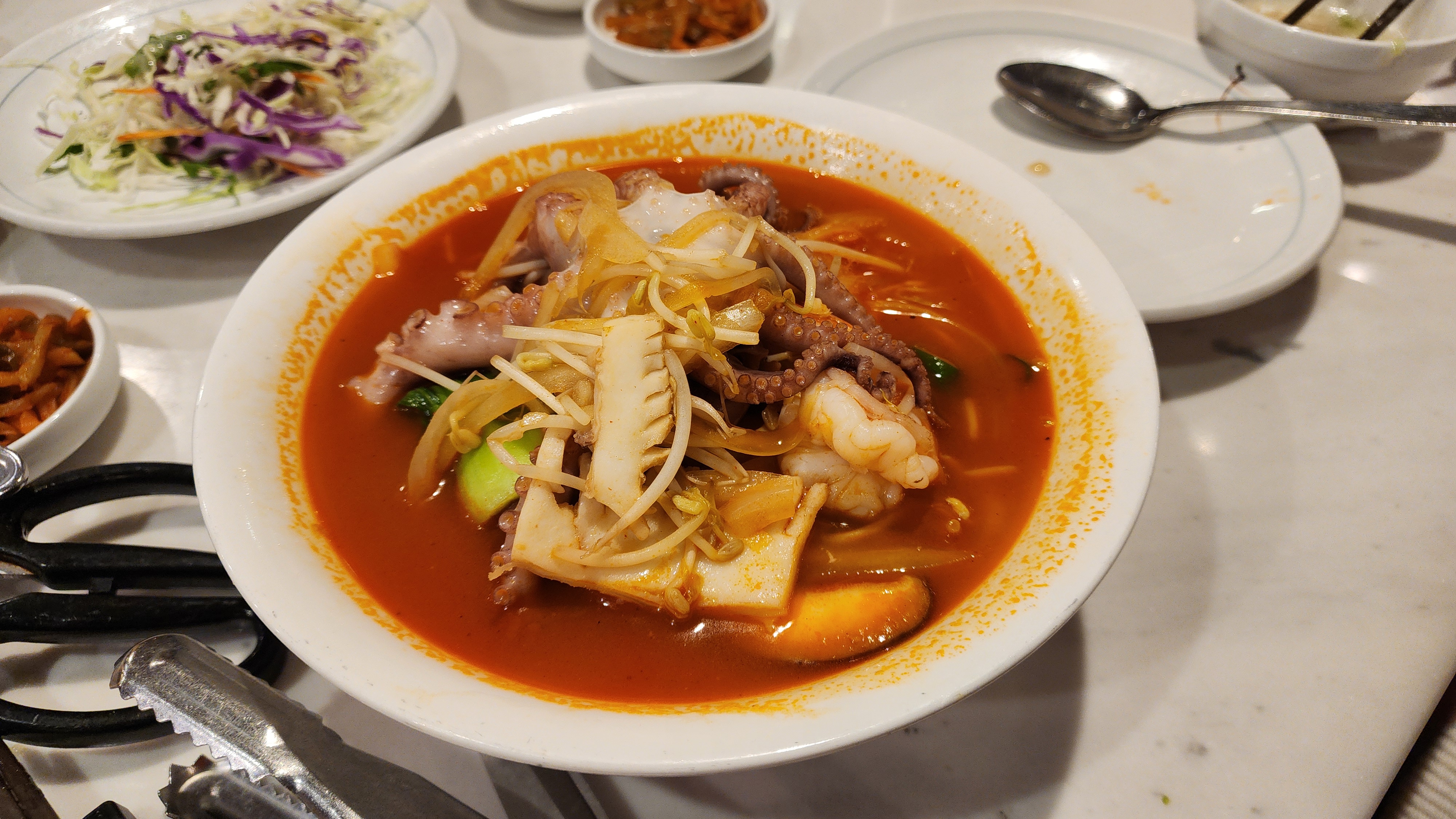 낙지 한마리가 턱 들어가있고 나머지 해산물들도 잡내가 없었고 새우도 토실한게 들어있었어요.