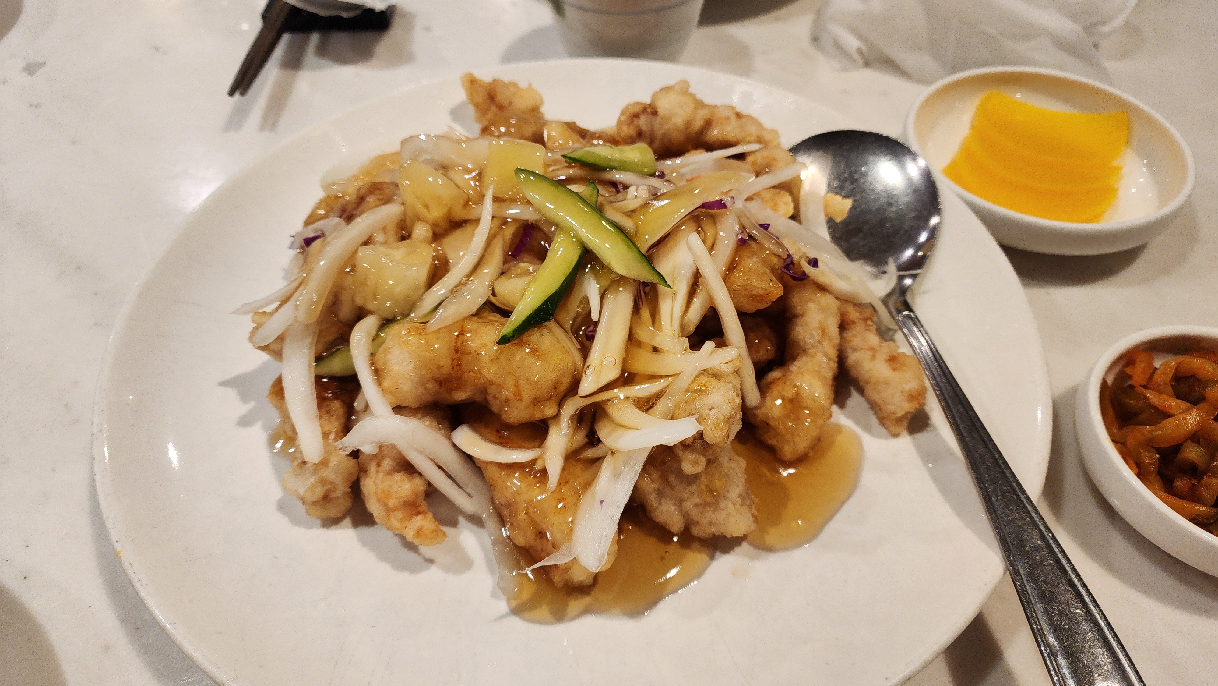소스가 부어져서 나와도 맛이 탕수육이 잘 튀겨져서 맛있었어요.