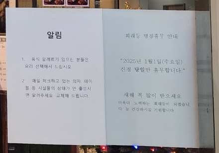 2025년 1월 1일(수요일) 신정 당일만 휴무 한다고 하네요.