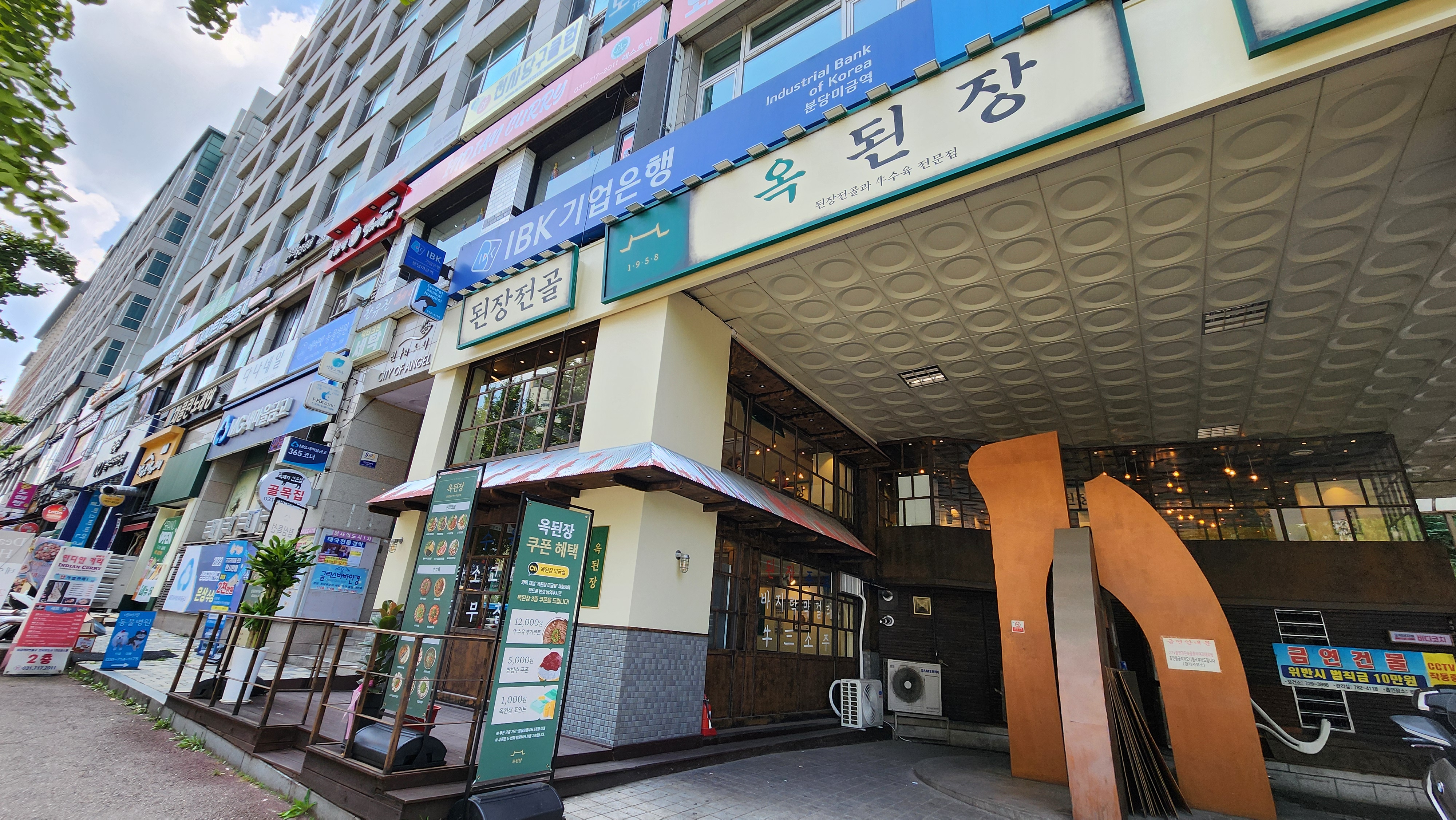 옥된장 미금점은 미금역 8번 출구에서 가깝고 천사의도시에서 바로 보여요.
