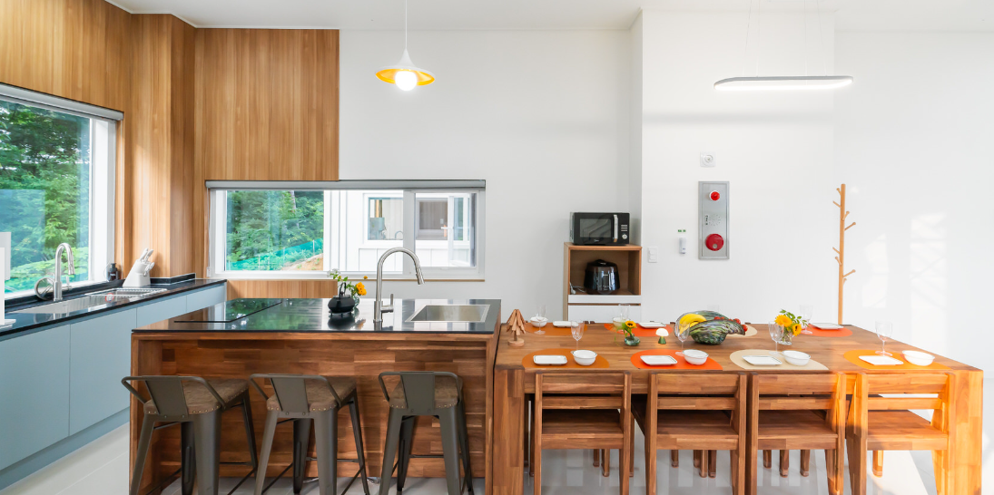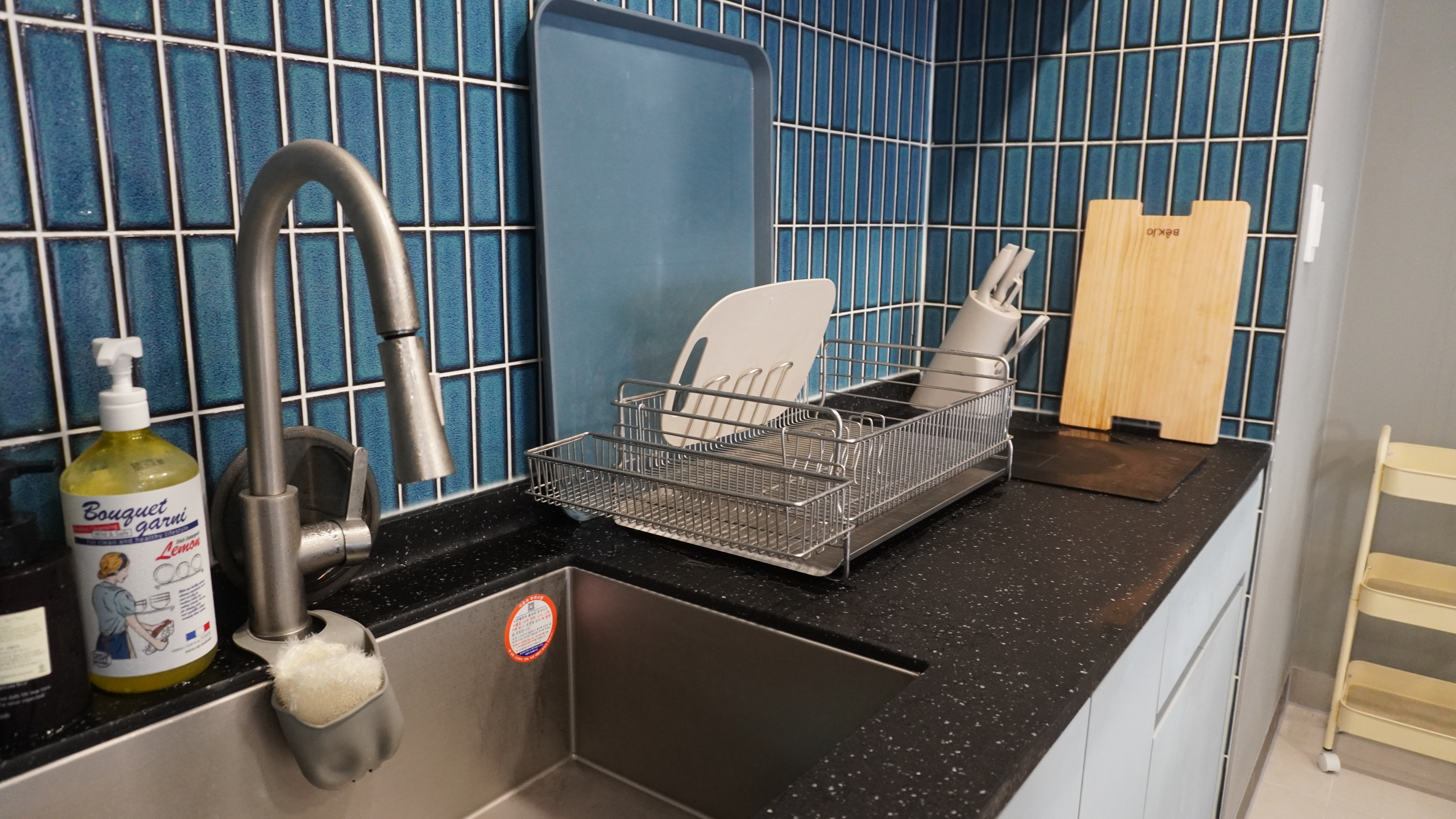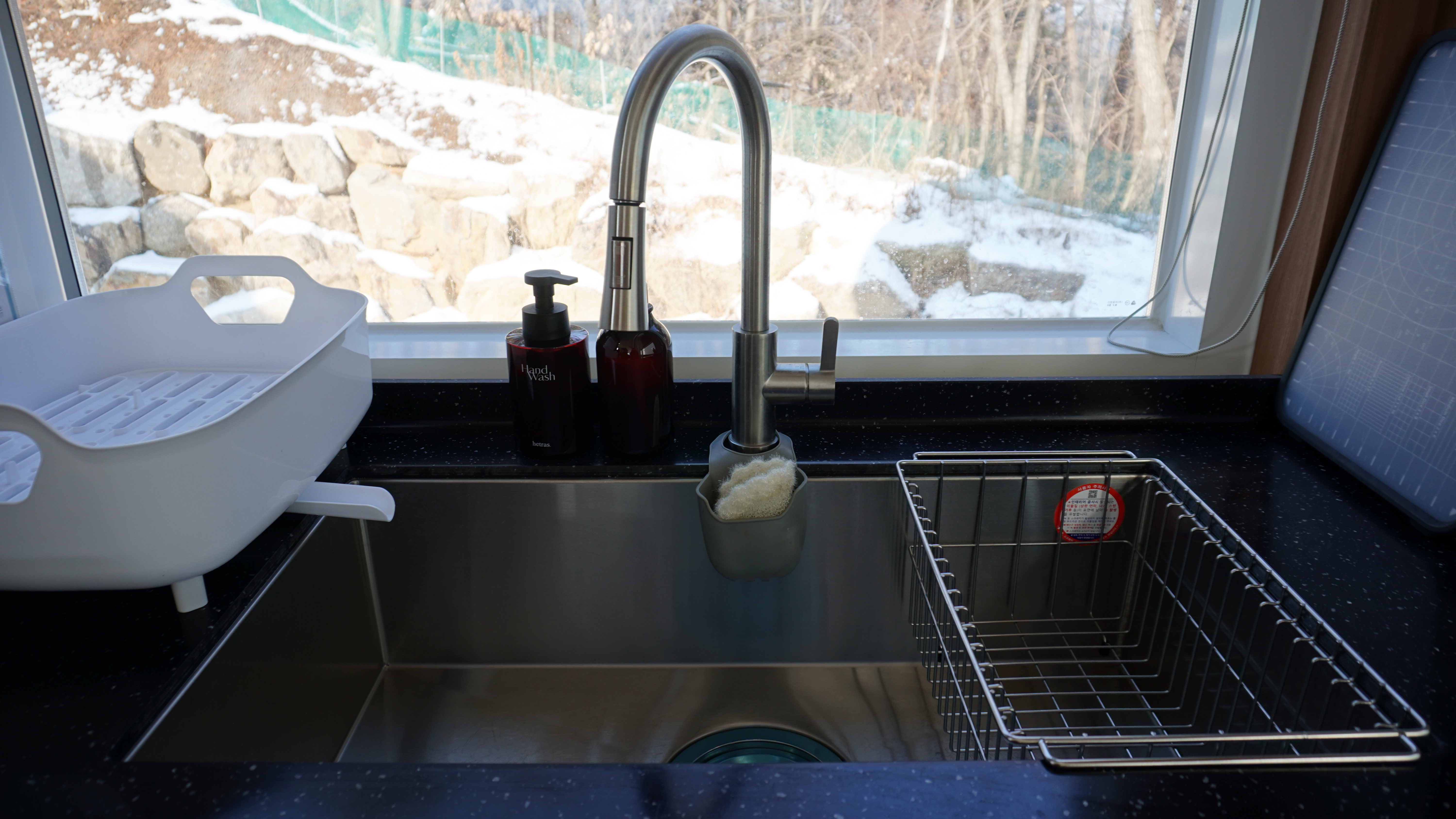 싱크 말고 컵 옆에 개수대가 하나 더 있어서 간단한 설거지도 편하게 하고 식탁도 넓어서 좋았어요.