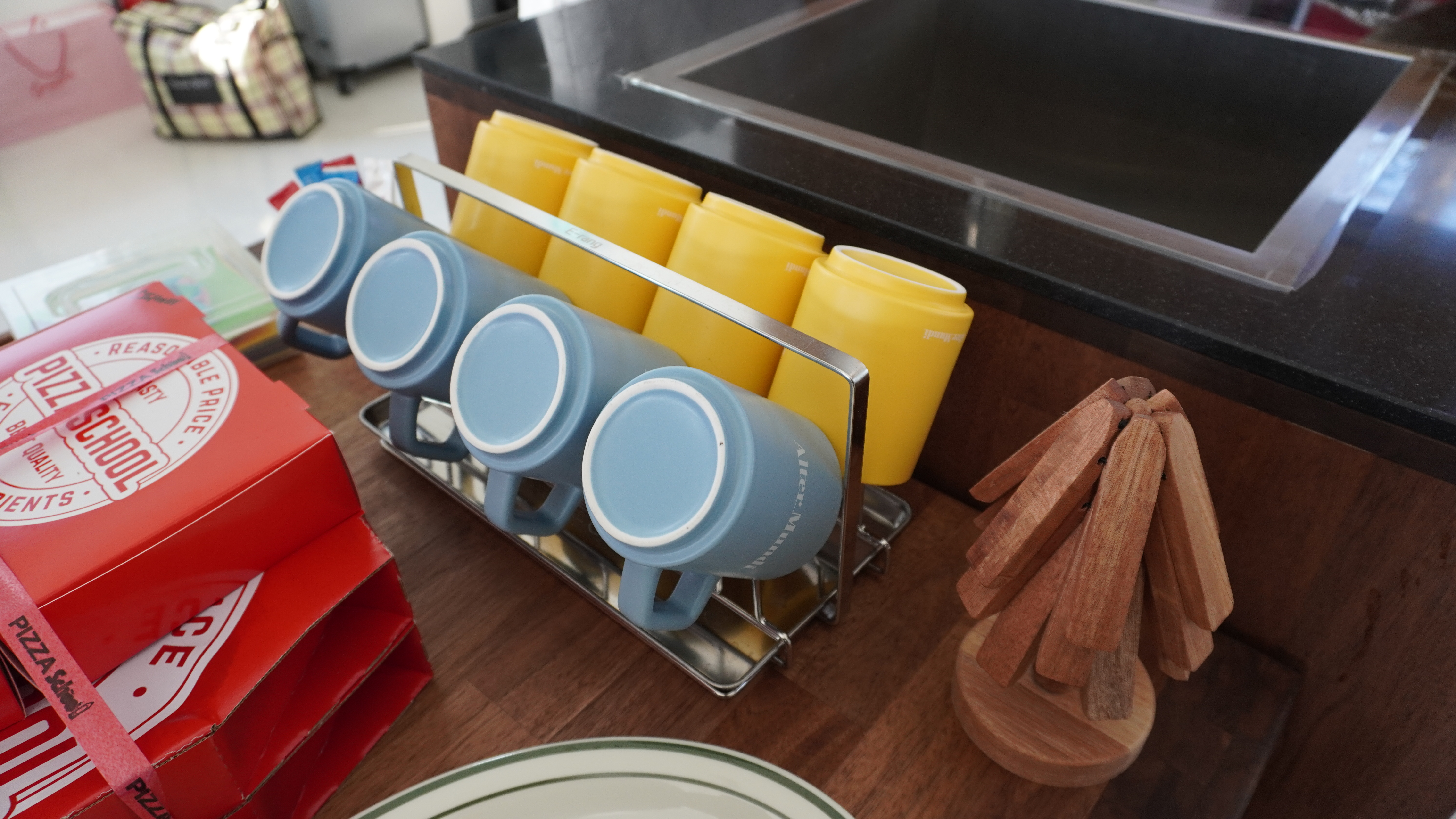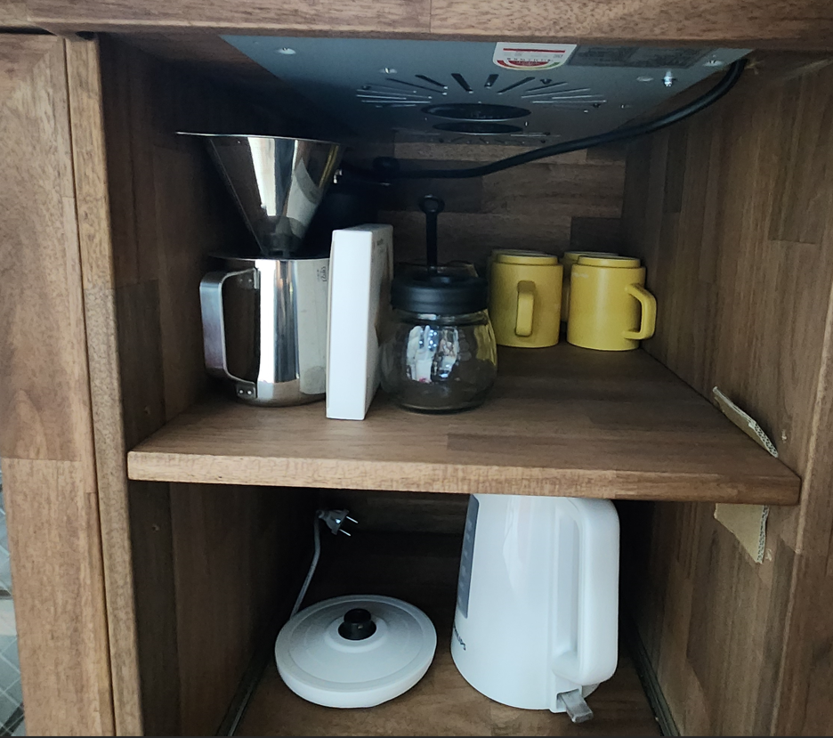 정수기 있어서 물 따로 안사가서 좋았고요, 커피포트랑 머그컵 등도 넉넉했고 드리퍼가 있어서 원두커피 좋아하시는 분들은 원두만 가져오셔서 내려 드심 되겠더군요.