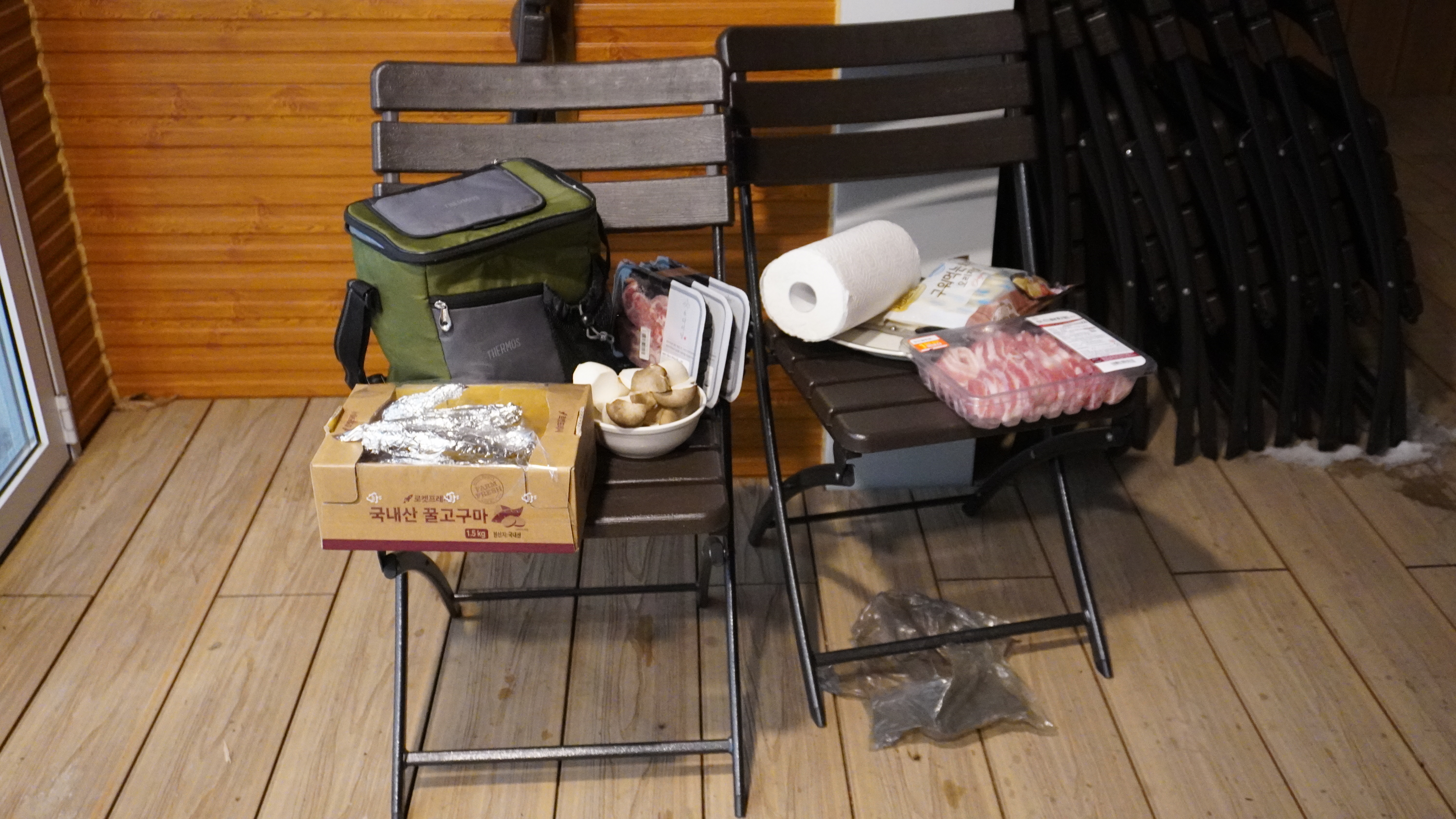 날이 추워서 테라스에서 먹는건 못했고요 고기는 구워서 올려보내고, 또 구워서 올려보내고 했네요.