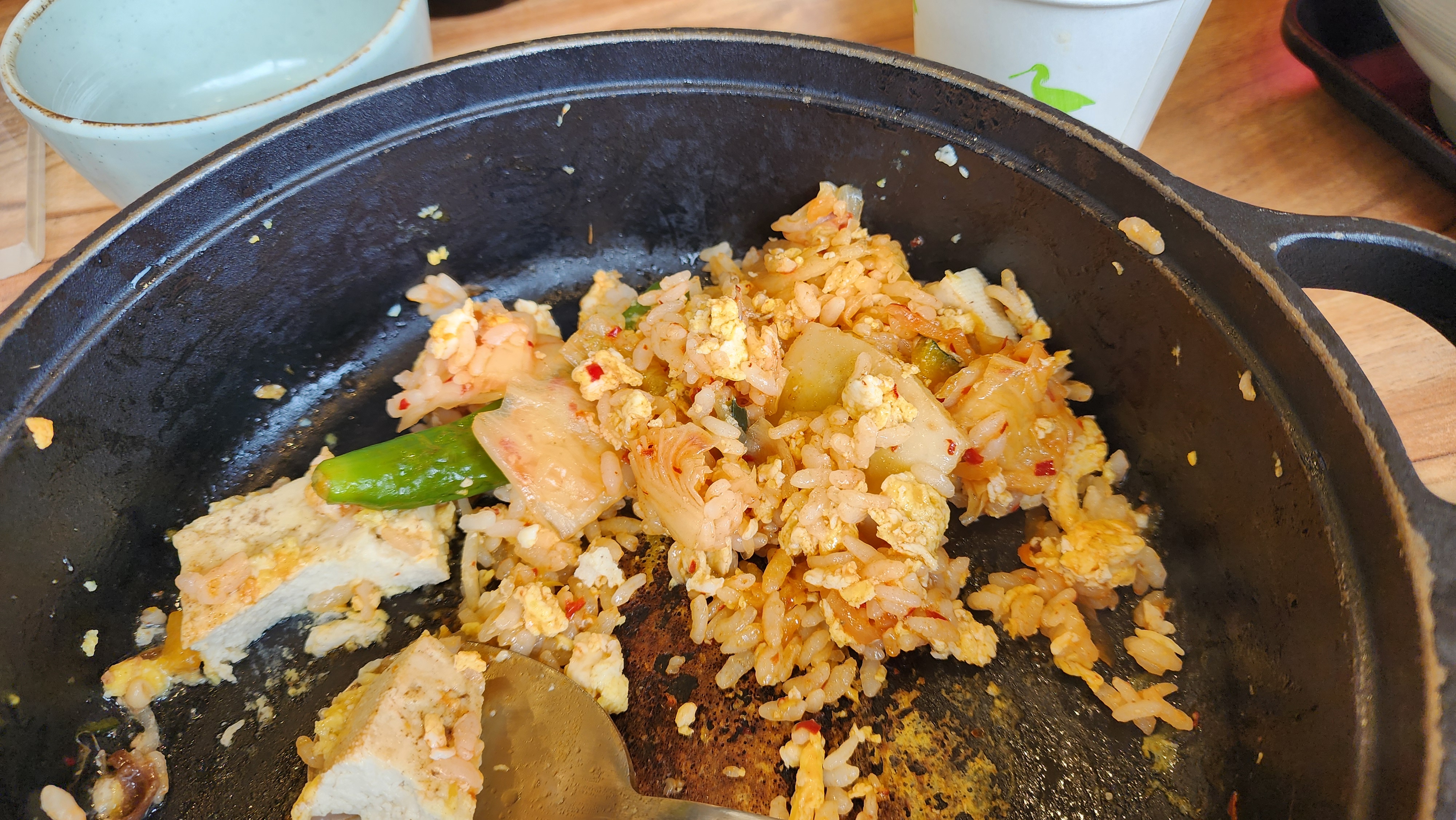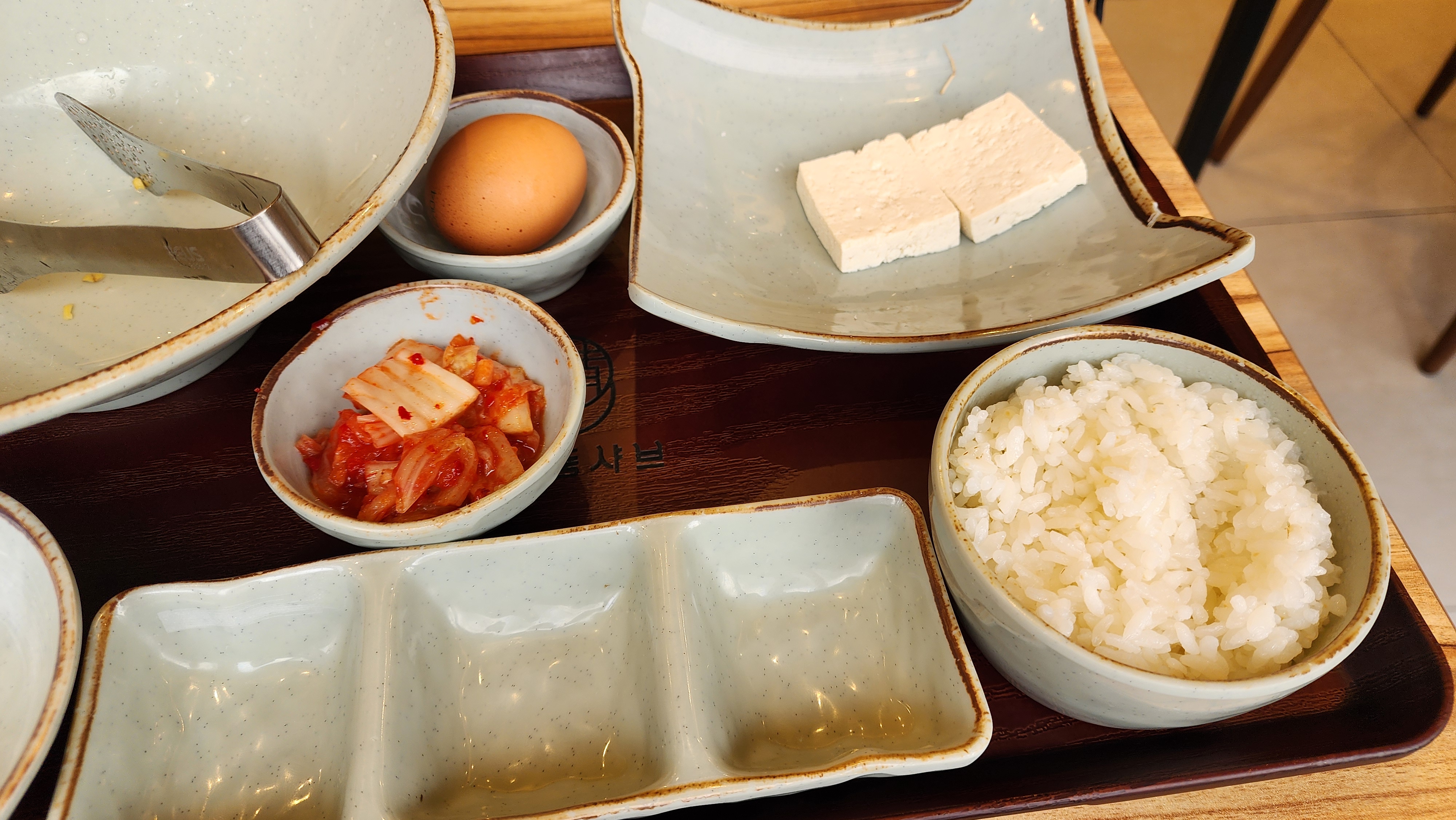 저는 날계란 찍어먹는게 취향에 안맞아서 다 먹고 밥이랑 두부, 김치, 계란 넣고 볶아먹었어요.