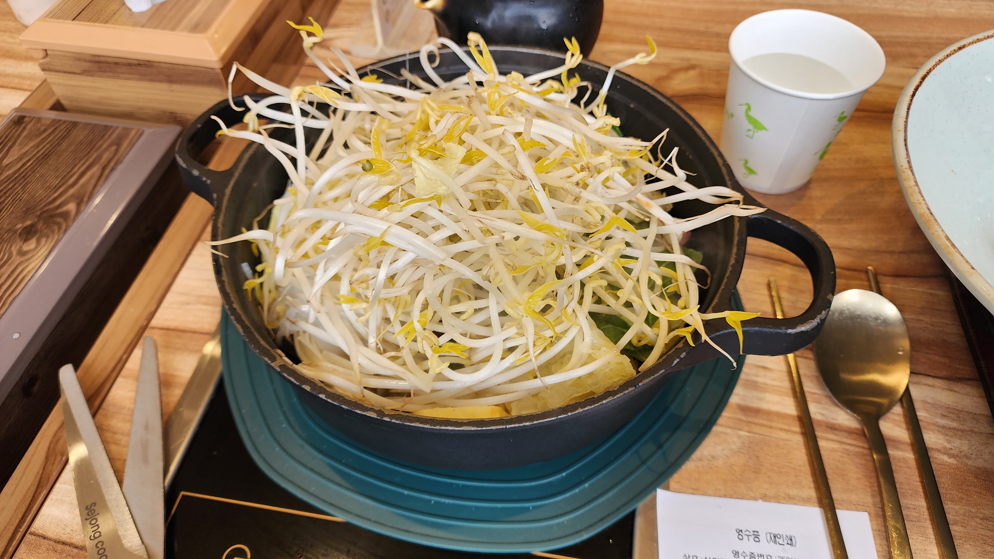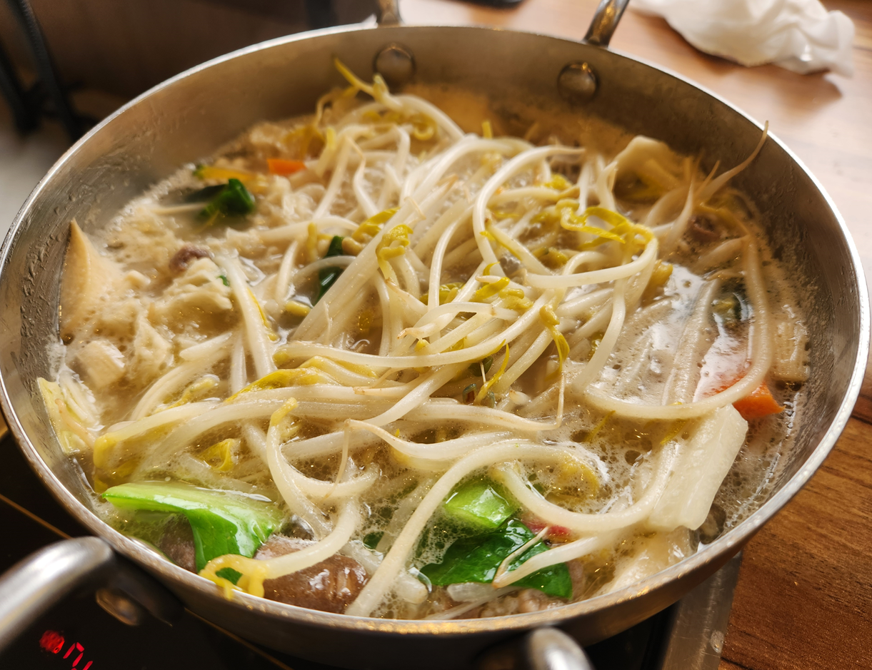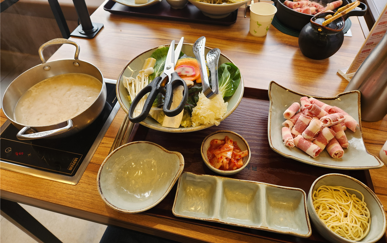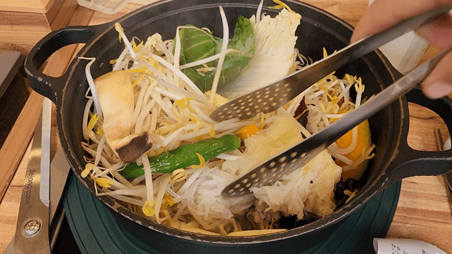사골육수는 냄비에 담겨 나오는데 인덕션에 끓여야 하고, 육수가 끓으면 야채를 넣어 끓여야 하는데 기호에 맞게 드시면 될 것 같아요.