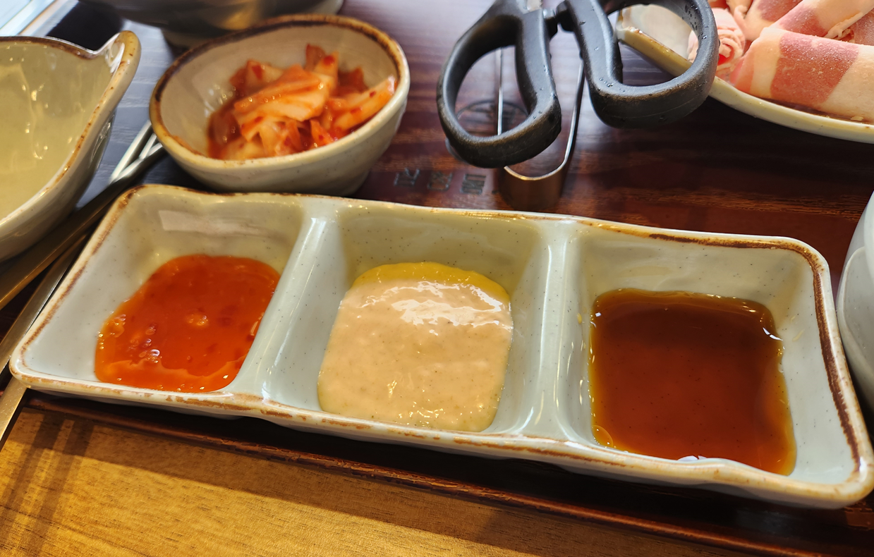 소스그릇은 나중에 식사에 같이 나오는데 테이블에 있는 소스를 기호에 맞게 덜어 먹으면 되어요.