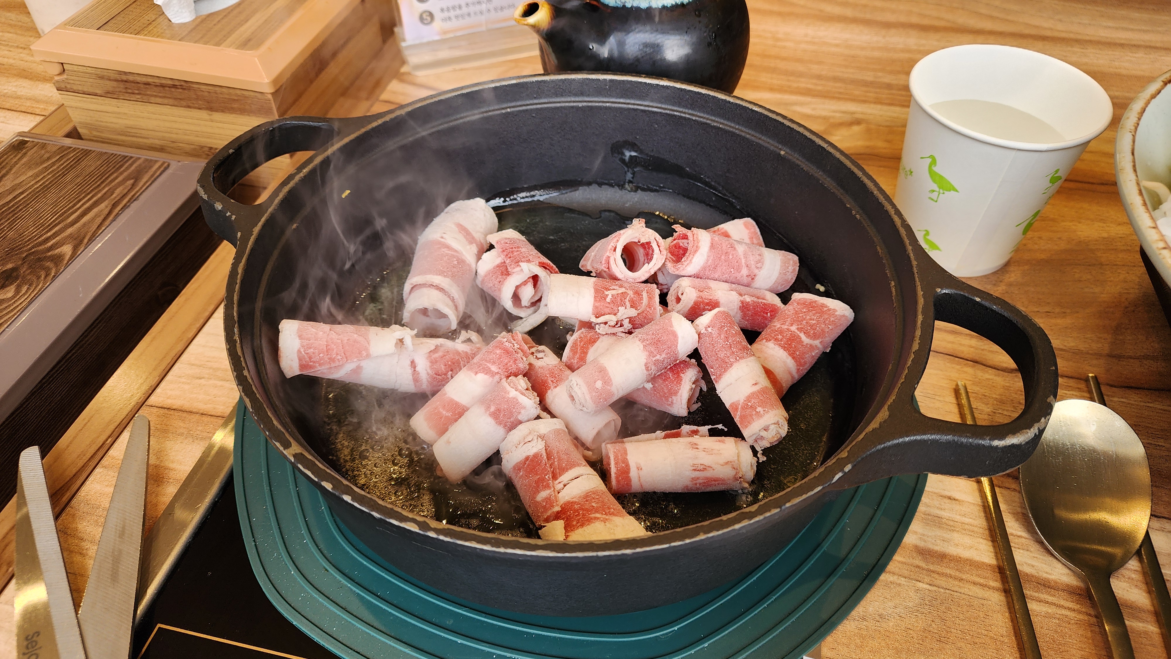 1인 샤브샤브 집인데 스키야키에 편백찜까지 판매하는 곳이더라구요.