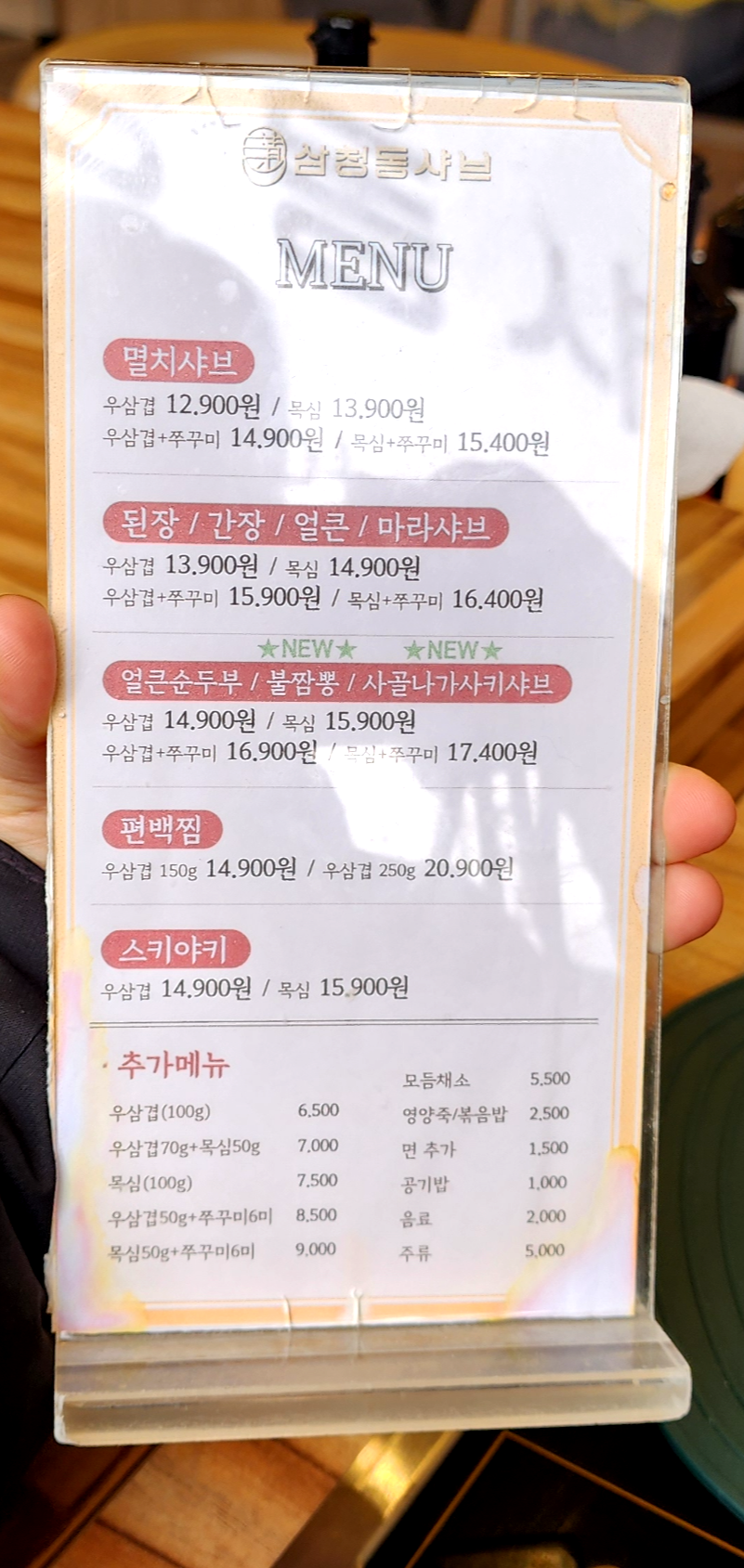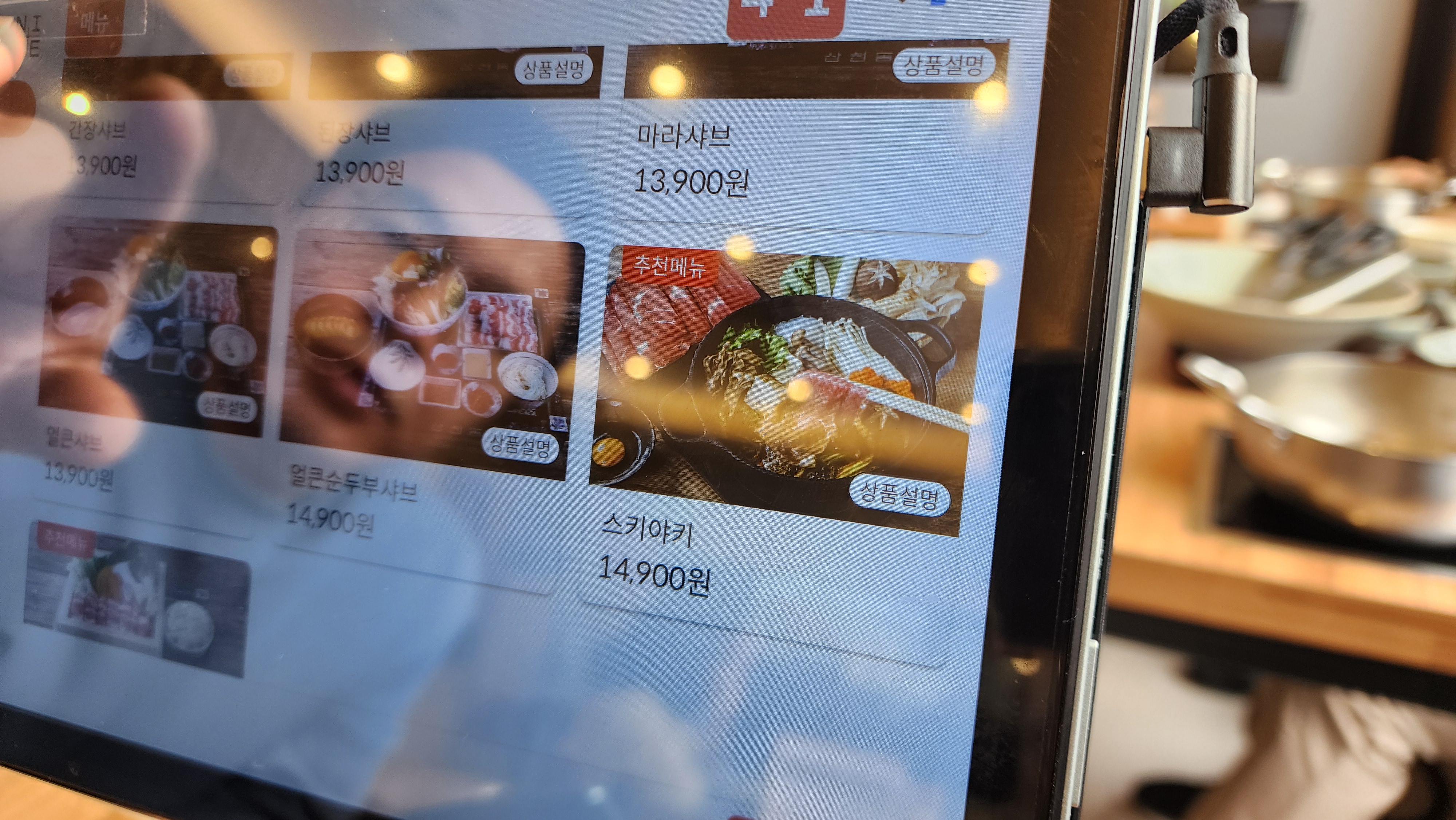 멸치샤브, 된장 간장 얼큰 마라 샤브, 얼큰순두부 불짬뽕 사골나가사키샤브, 편백찜, 스키야키 등을 판매중이더군요.