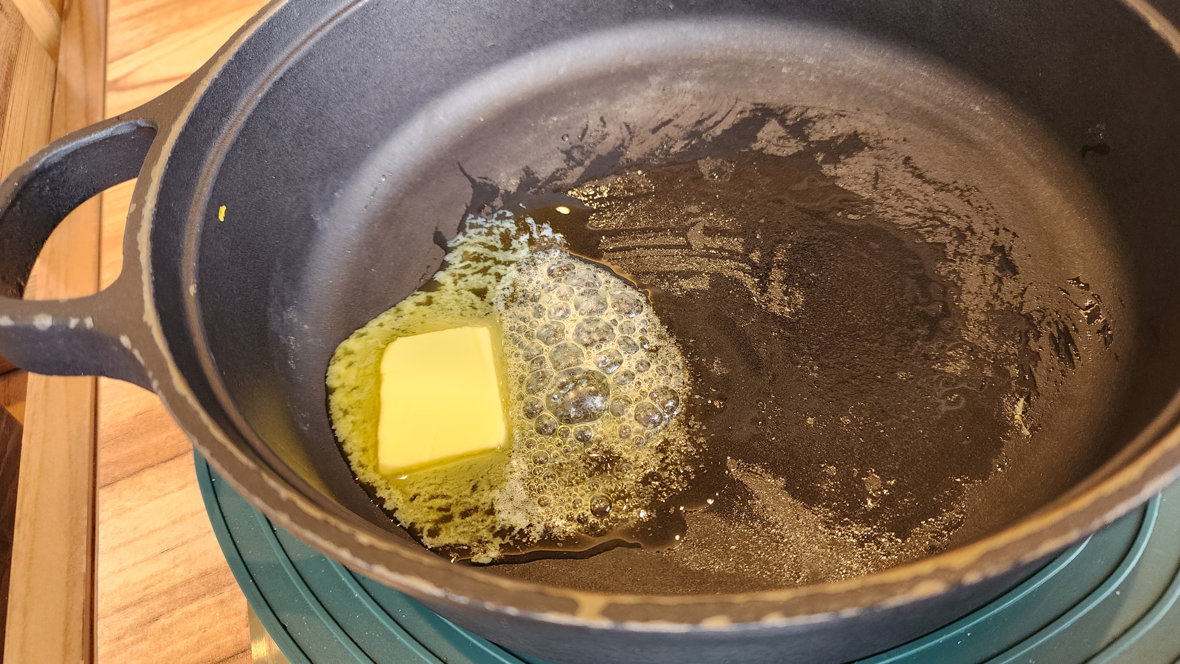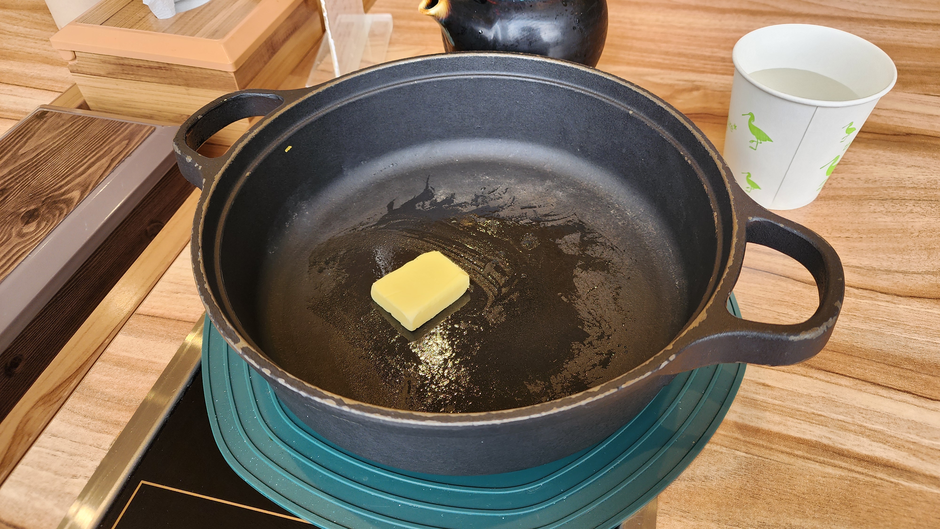 무쇠 팬에 버터 한조각을 두른 후 녹여서