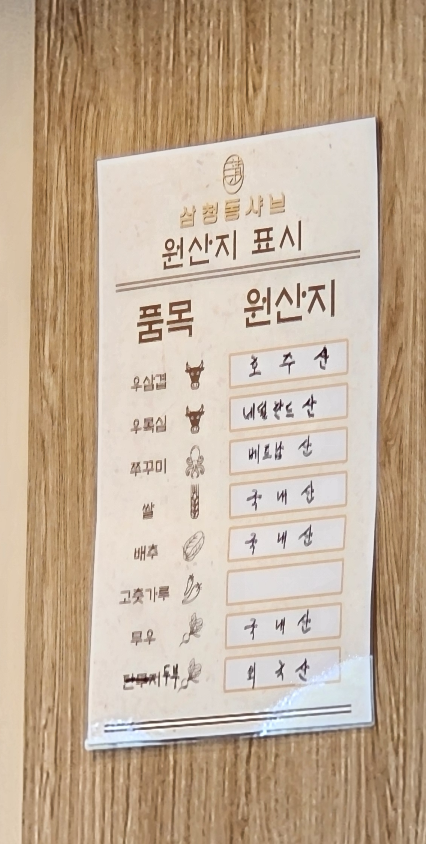 메뉴도 테이블에 한번 더 언급되어 있었어요. 원산지 표시도 참고하셔요