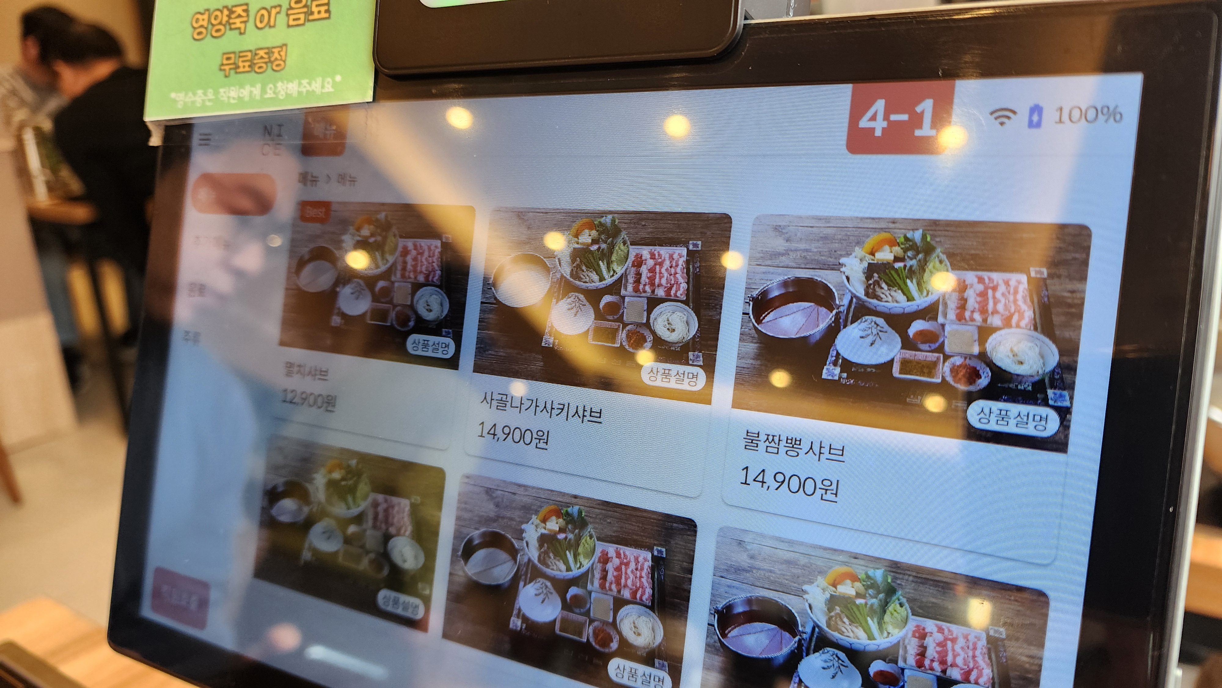 테이블마다 패드가 있어서 주문하면 되었는데요 사골나가사키샤브와 스키야키를 주문했어요.