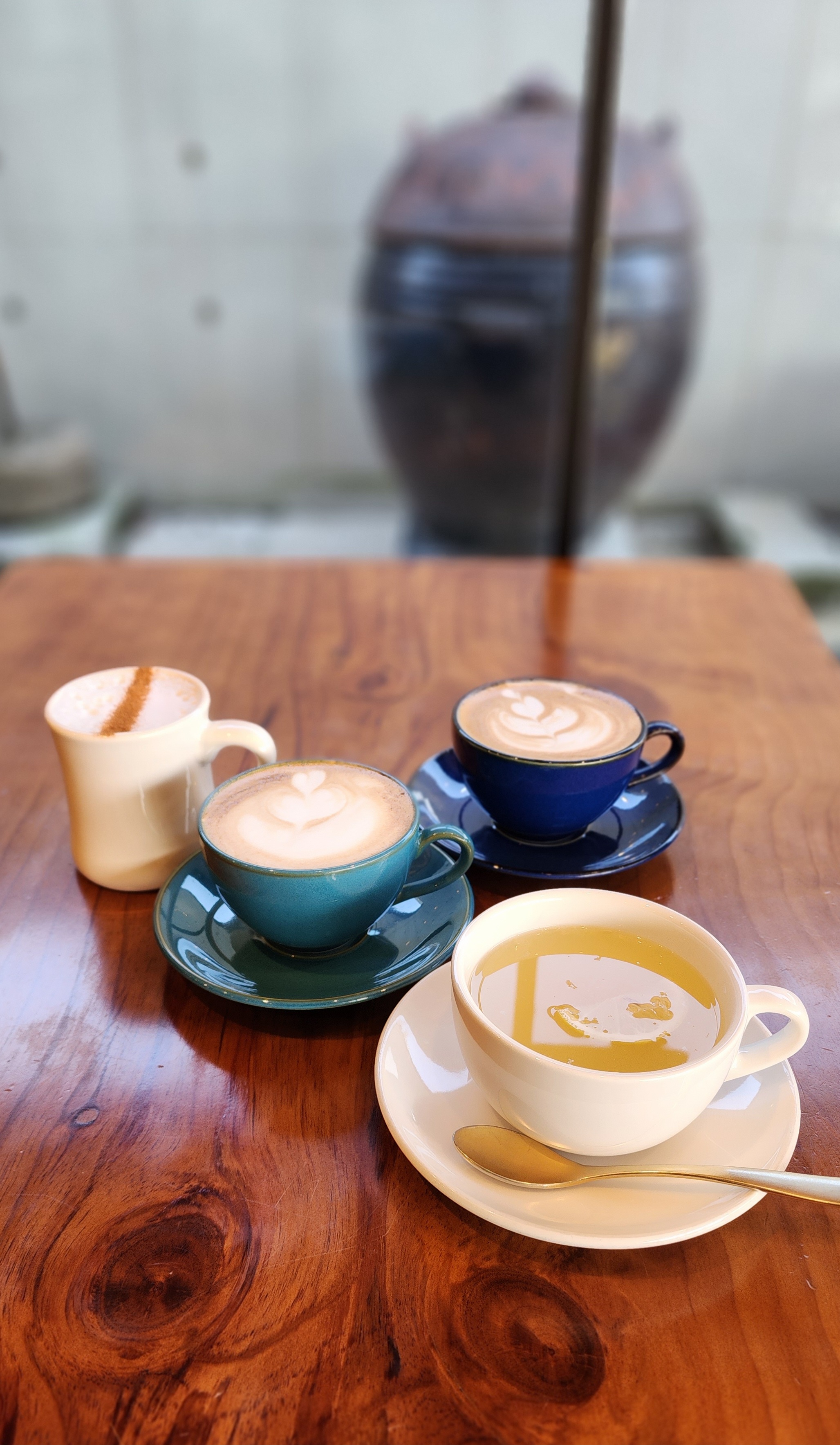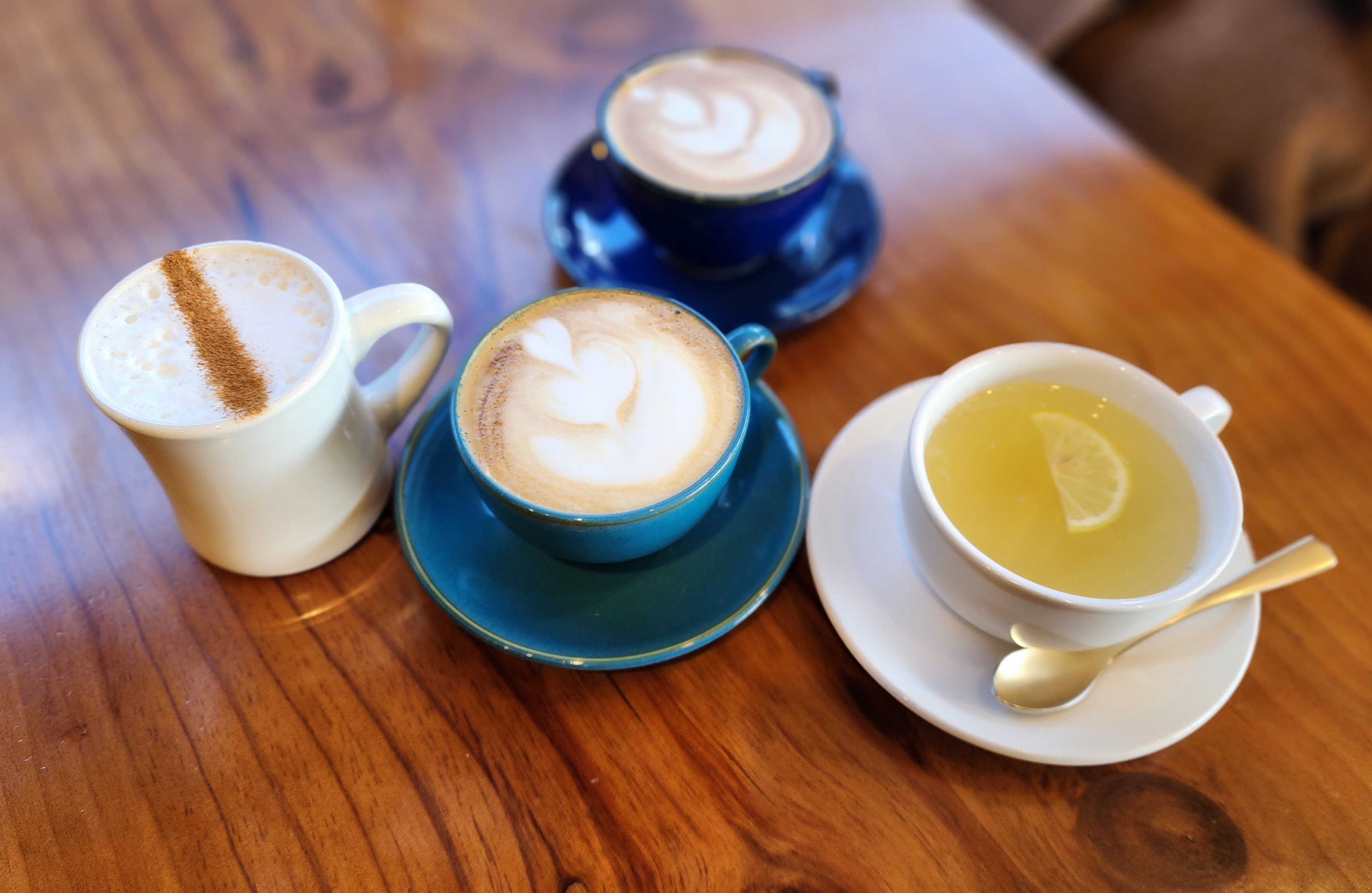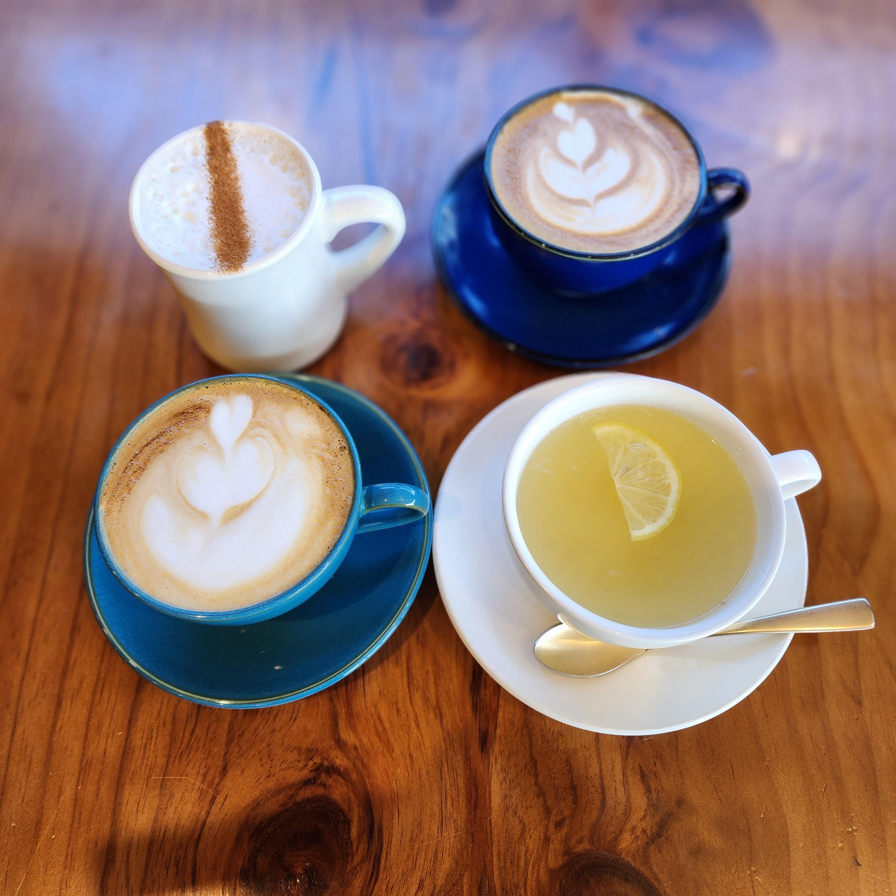 생강라떼, 카페라떼, 바닐라라떼, 레몬차를 주문했어요.